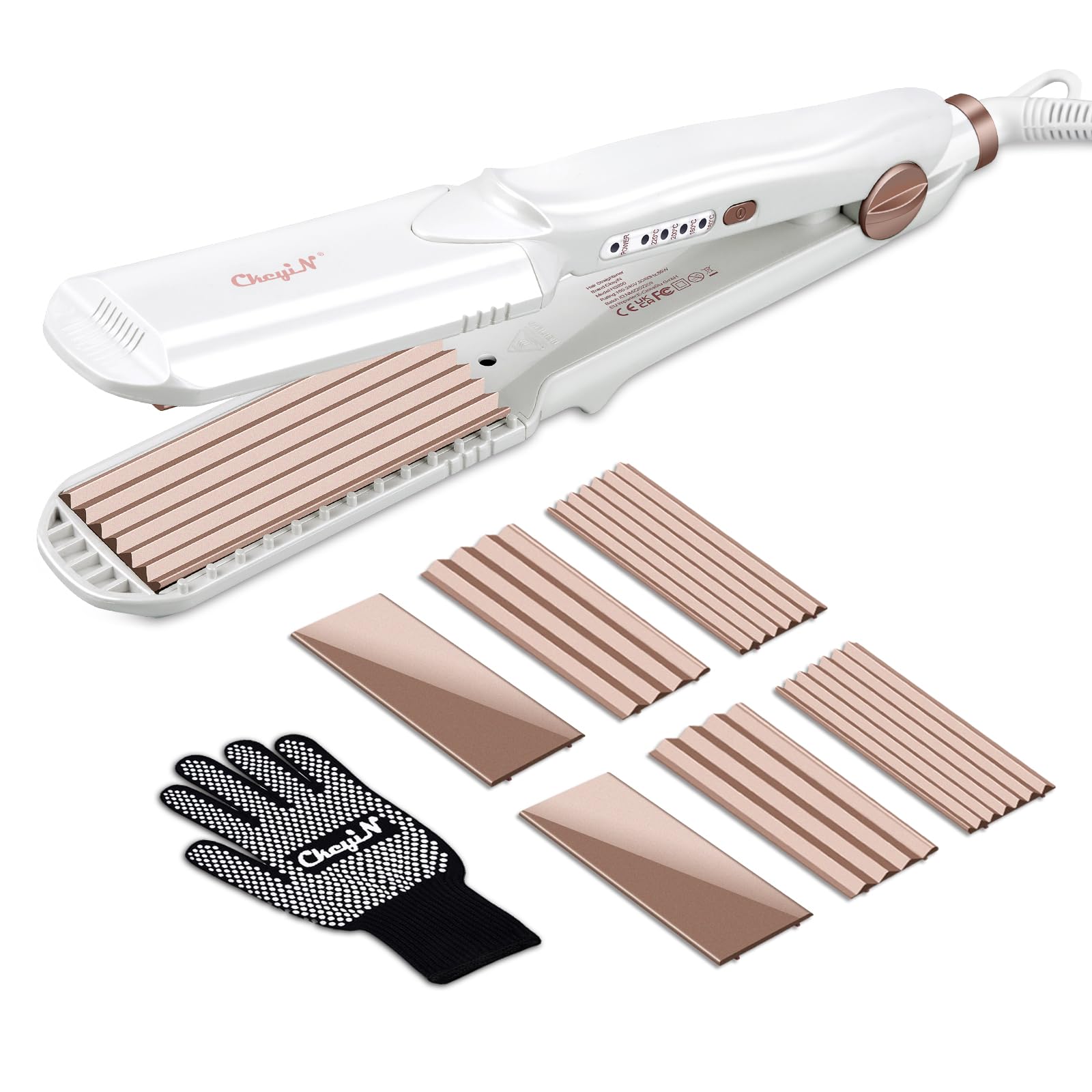 CkeyiN Hair Crimping Iron with 3 Interchangeable Plates, Hair Waver for Fluffy Hairstyle, Curling Iron for Women Adjustable Temperature Hair Straightener Curling Wand Corn Styling Tool