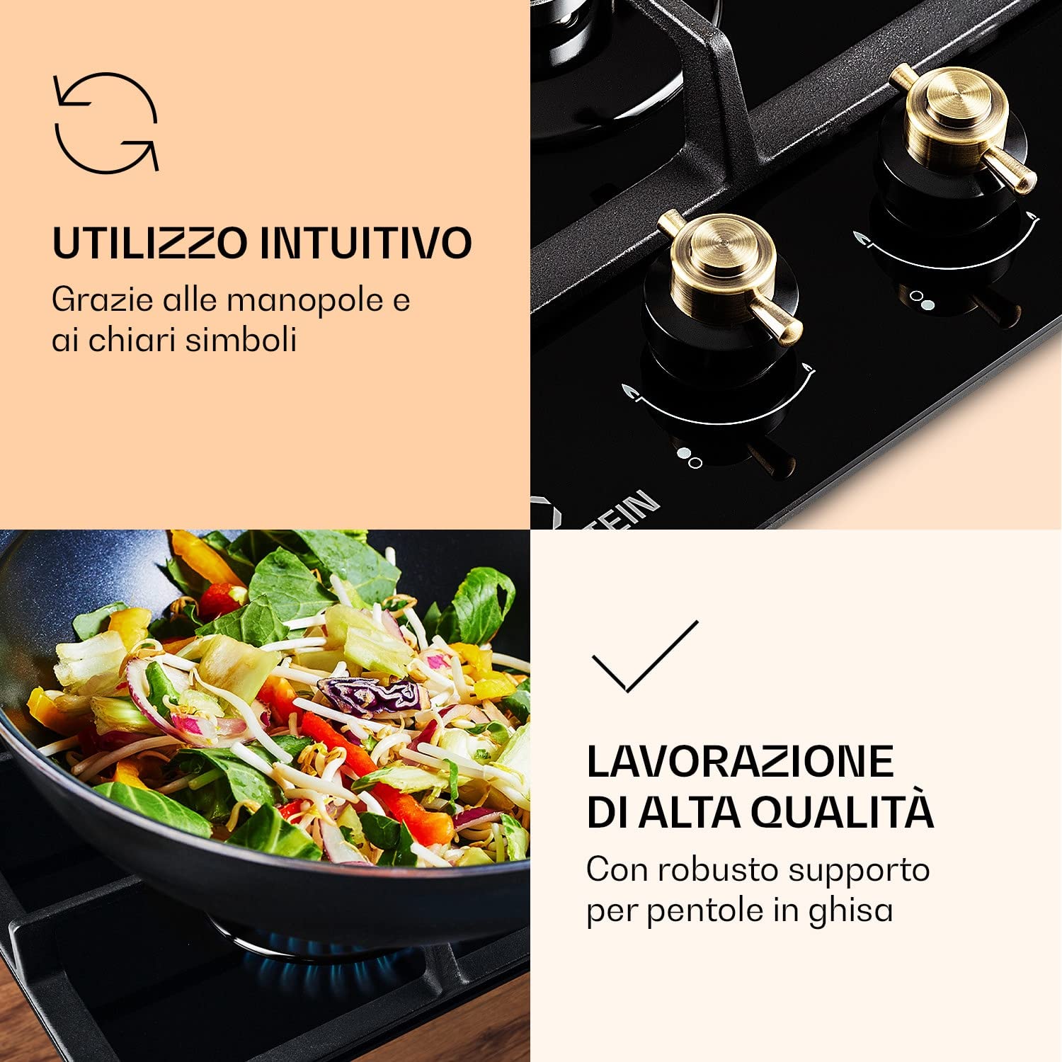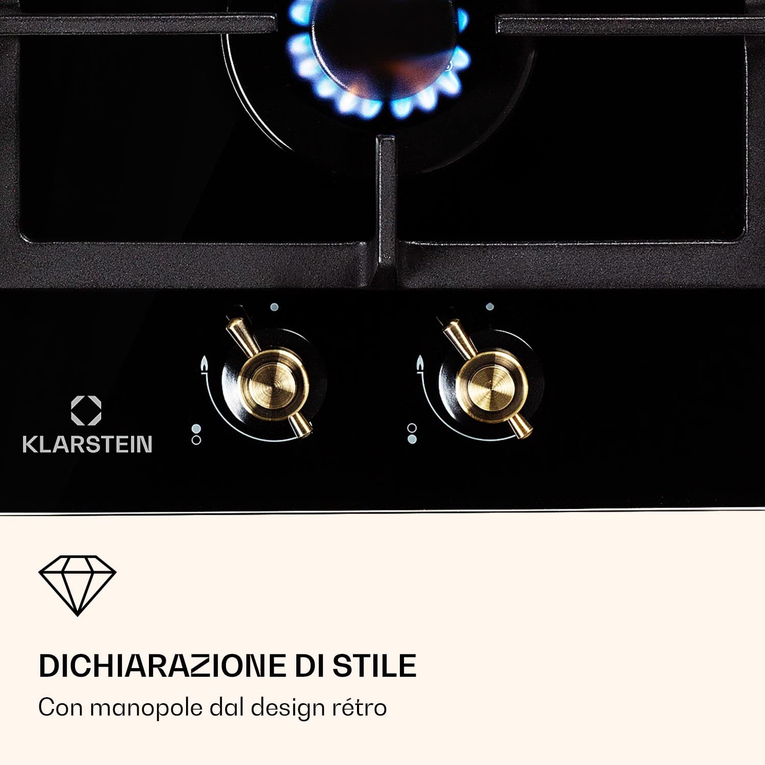["EFFICIENT: All hail the Queen! The Klarstein Victoria gas hob not only brings the environmentally friendly efficiency of a wonderfully easy-to-control gas stove into your kitchen.","RETRO LOOK: It also enriches it with the unparalleled retro look of the British Empire at the height of its time. On the spacious Klarstein Victoria gas stove are four high-quality Sabaf burners, which provide strong performance.","EASY OPERATION: The operation is absolutely intuitive thanks to the self-explanatory symbols on the large control knobs. The heat supply can be adjusted directly during the cooking process. Additional fire for ignition is not necessary.","SMART: The burners distribute the heat evenly in the center and at the edges of the pots or pans, everything is perfectly cooked. The two removable grids made of solid cast iron are suitable for almost all types of cookware and fit securely and securely over the flames.","CERAMIC GLASS: After cooking, the gas hob can be easily cleaned if necessary: For this purpose, it has a coating of easy-to-clean, hardened ceramic glass. It not only looks incredibly good, it is also wonderfully easy to clean."]