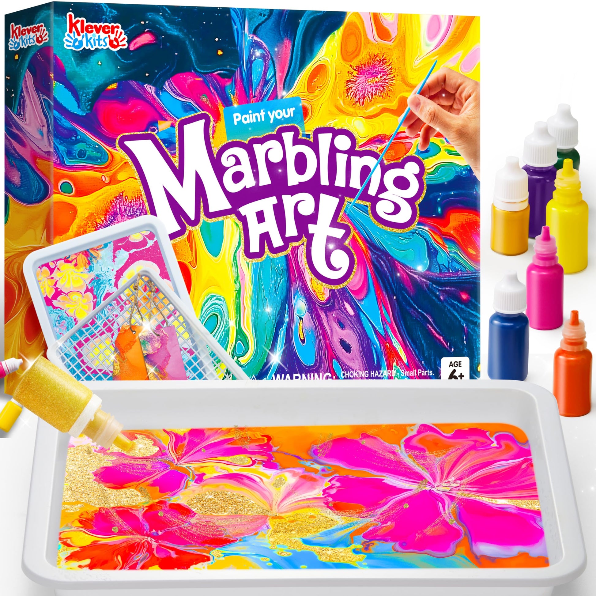 Clever Kits Water Marbling Paint for Kids, Magic Marbling Paint Art for Girls aged 6-12, Marbling Paint Kit for Boys, Crafting Sets for Activities, Birthday Gift