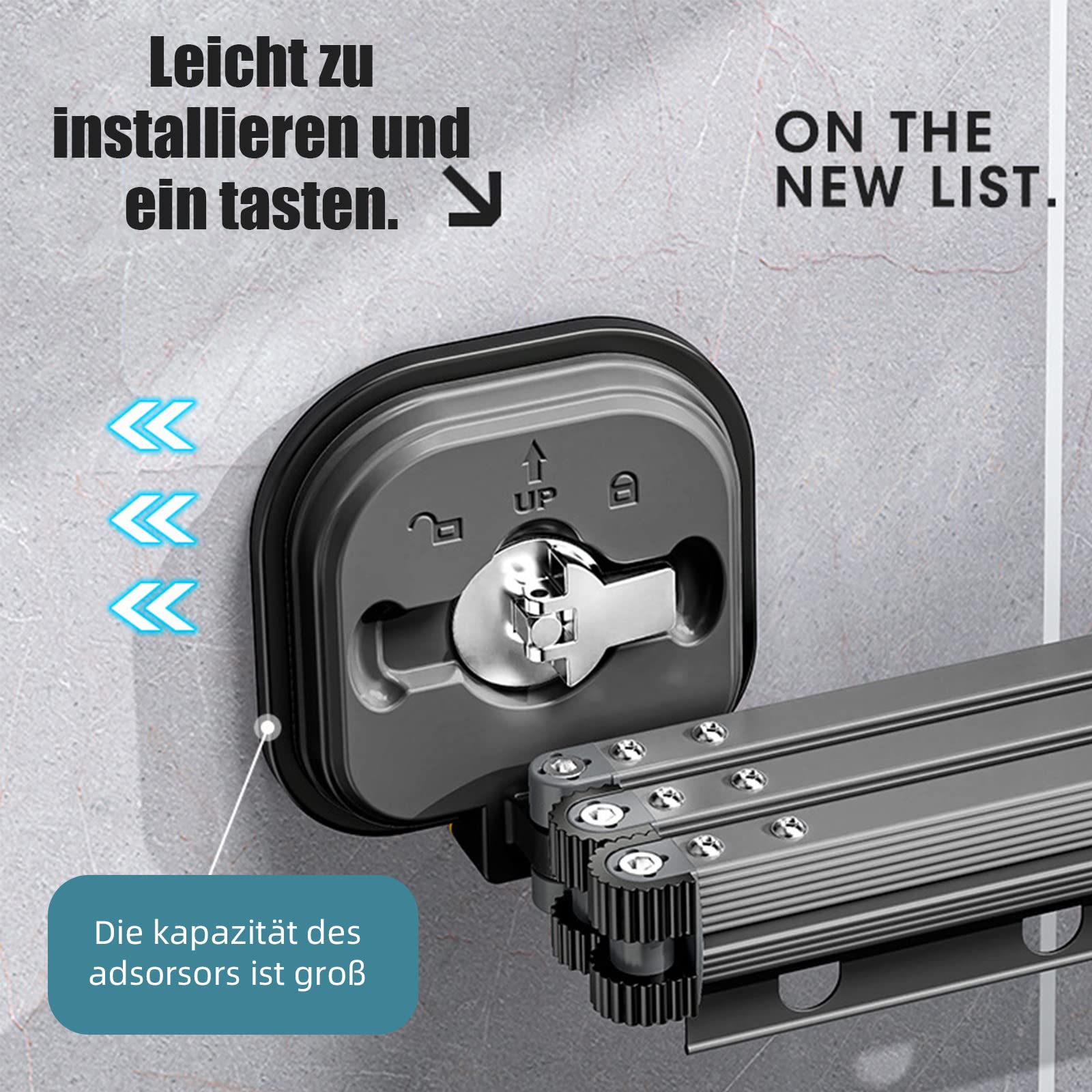 【Strong Suction Cup Design】The laundry rack features a thickened, strong vacuum suction cup with a diameter of 12 cm. The adsorption force is strong and the dynamics are stable. The rack can be used on smooth walls indoors and outdoors.