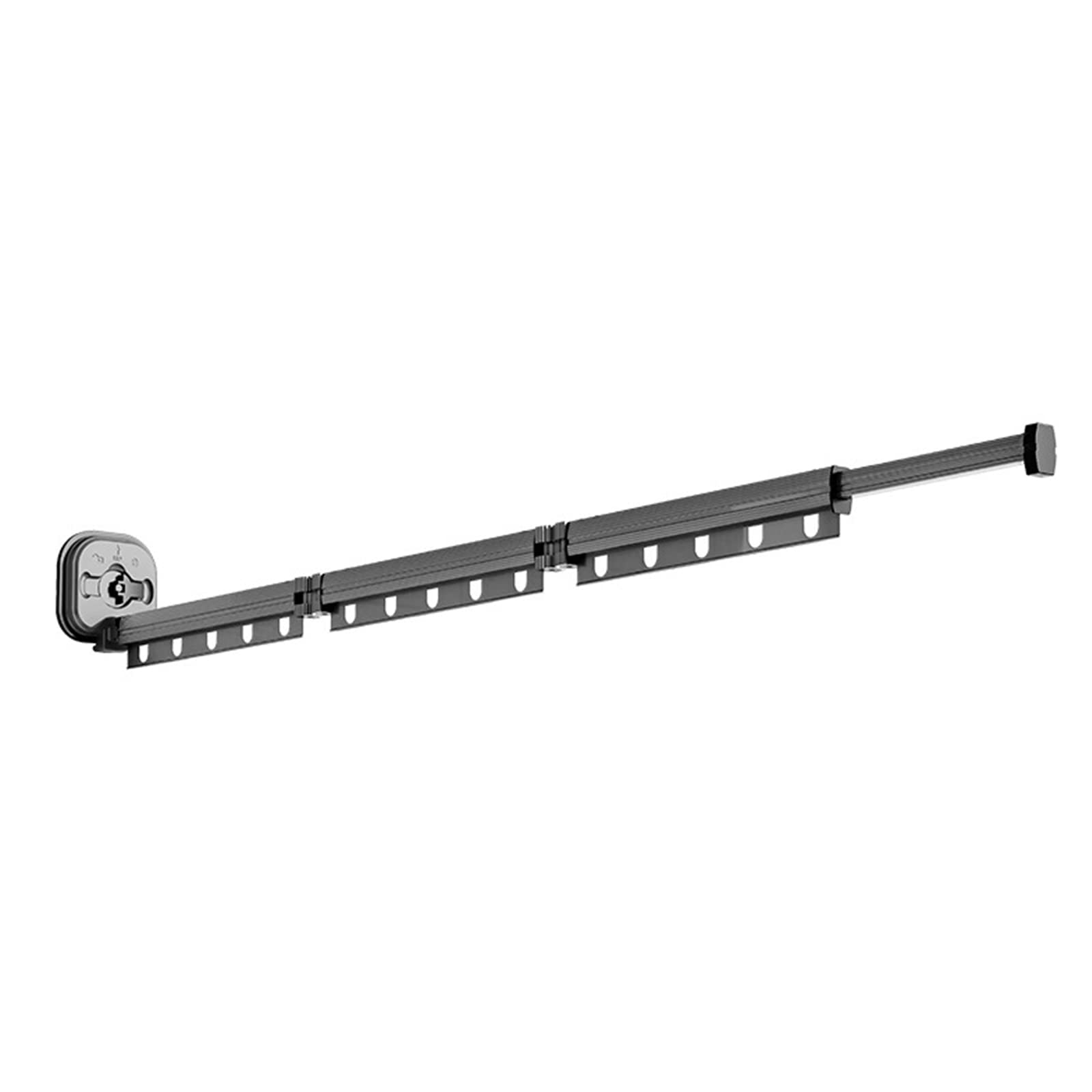 Clothesline, Retractable Wall Mounted Garment Rack with Suction Cup, Foldable Collapsible Clothes Rail with Hooks & Towel Holder Balcony, Laundry, Bathroom, Bedroom (Dark Gray 3-tier)