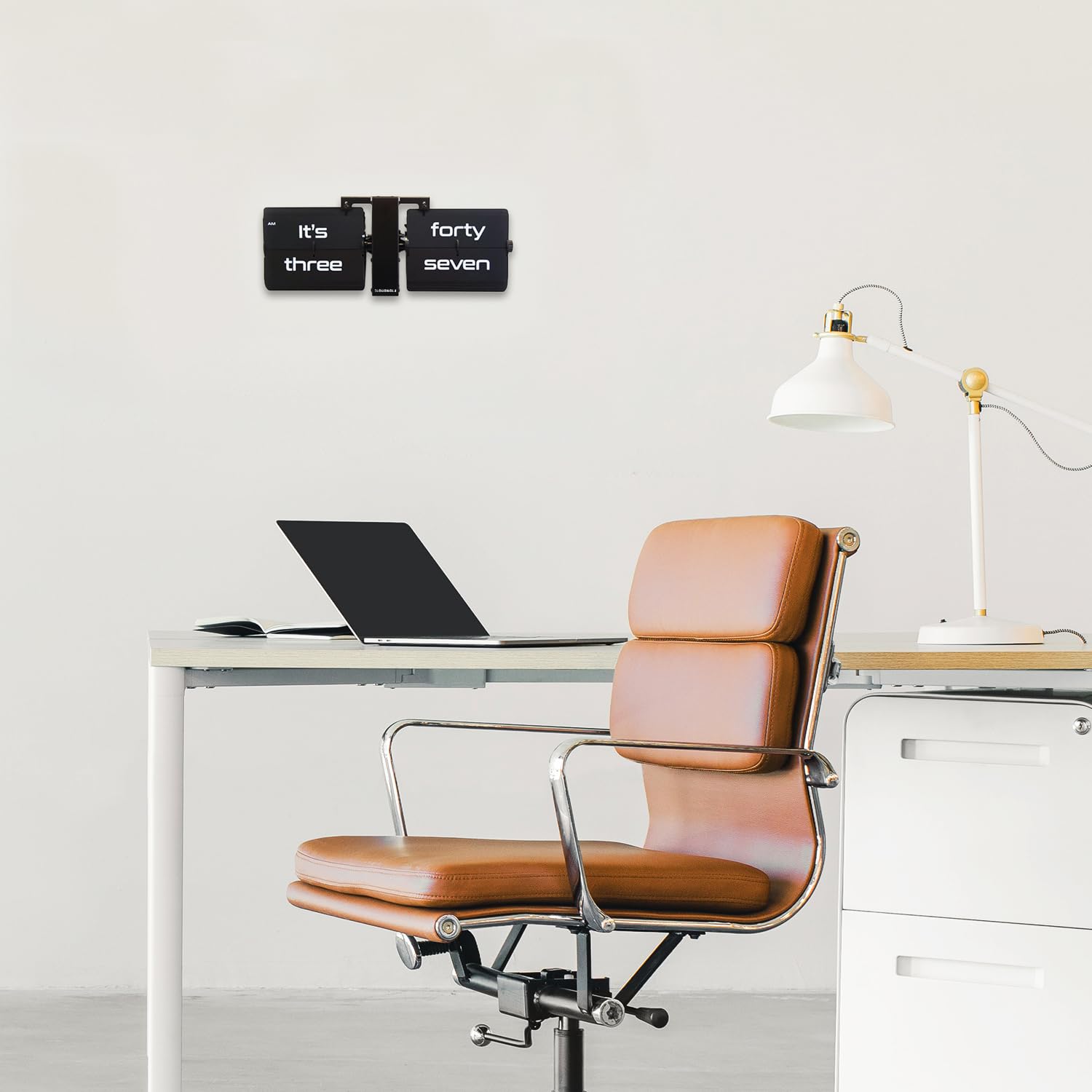 ["Design: High-quality folding mechanism reminiscent of a retro digital watch, but with words instead of numbers. A real conversation piece that can be mounted on the wall or placed on the table. Red metal frame to enhance the traditional flip clock."]