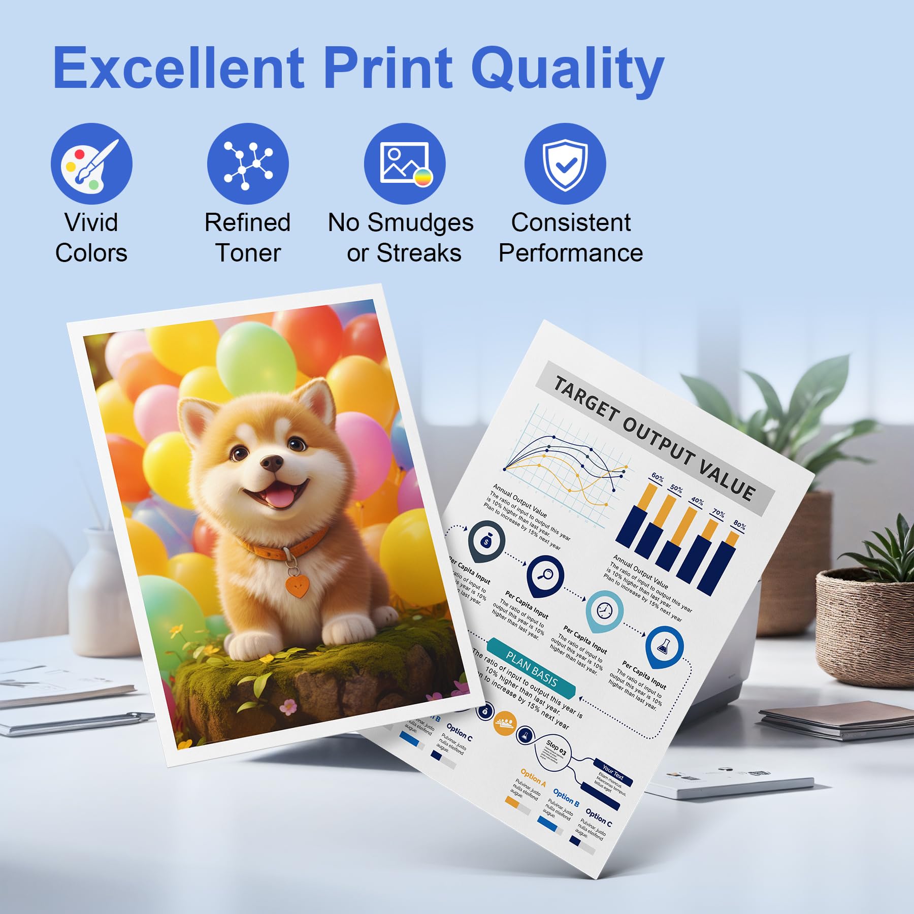 ["Sharp and consistent results: The ONLYU CLT-P404C uses toner particles in the nanometer scale for a particularly strong toner adhesion. This ensures sharp text, vibrant color reproduction, and long-lasting clarity. Blurriness, smudges, streaks, and inaccurate colors are a thing of the past - for professional print quality with every print","Perfect fit, effortlessly: The ONLYU P404C is equipped with advanced smart chips that ensure seamless compatibility just like the original. No adjustment issues, no error messages - just smooth and efficient printing","Compatible models: Compatible for Samsung Xpress C480fw toner C480W C480 C480fn C430 C430w C432 C432w C433 C433w C482 C482w C482fw C483 C483w C483fw","More pages, less cost: Print up to 1,500 pages in black and white and 1,300 pages in color - thanks to standardized toner filling for longer cartridge life. Enjoy original-level print quality for less than 30% of the cost - economical, reliable, and efficient","Simple installation: The images and videos on the detail page show the installation steps from different perspectives. In addition, the toner cartridge comes with an easy-to-understand instruction manual that guarantees a hassle-free installation"]