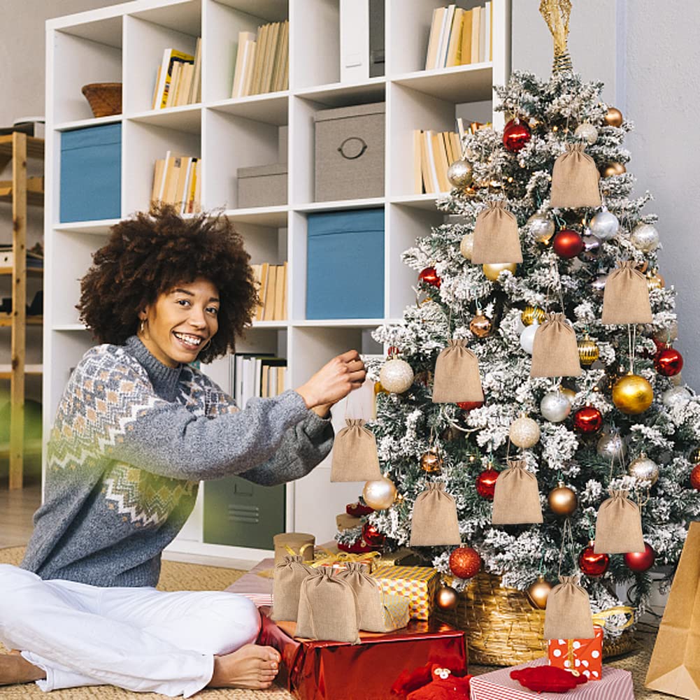 ["Quantity: Package brings you 30 pieces of drawstring bags. Size: Approx. 5.9x7.87 inch / 15x20 cm. Please note the inner usable space and check the size carefully before purchasing. This drawstring bag is good for storing seeds, coffee beans, coins, candies, gifts, cream jars, necklaces, crafts, and other small items.","Material: Made of high-quality, reusable, eco-friendly jute fabric for storing items. The seams are strong and clean. The inside is made of soft material that prevents scratches and keeps items clean during storage. This will safely store delicate gifts like jewelry and bath bombs.","Durable Burlap Drawstring Bag: Drawstring Pouch is very nice and strong, and easy to carry. Each jute sack pouch comes with a built-in drawstring, making it easy to close and open, keeping items more beautiful and clean for convenient storage.","Multi-Purpose: These holiday party favor fabric bags have enough capacity to hold a variety of gifts, such as candies, cookies, chocolates, toys, jewelry, photos, and more, securely and neatly for you to hang party favors.","Occasion: Great for wedding bridal showers, baby shower gifts, party treat bags, birthdays, churches, hotels, business needs, holiday Christmas. DIY your bags to express love or thank you for every holiday gift. Give more love to your lover, friends, children, customers, or yourself."]