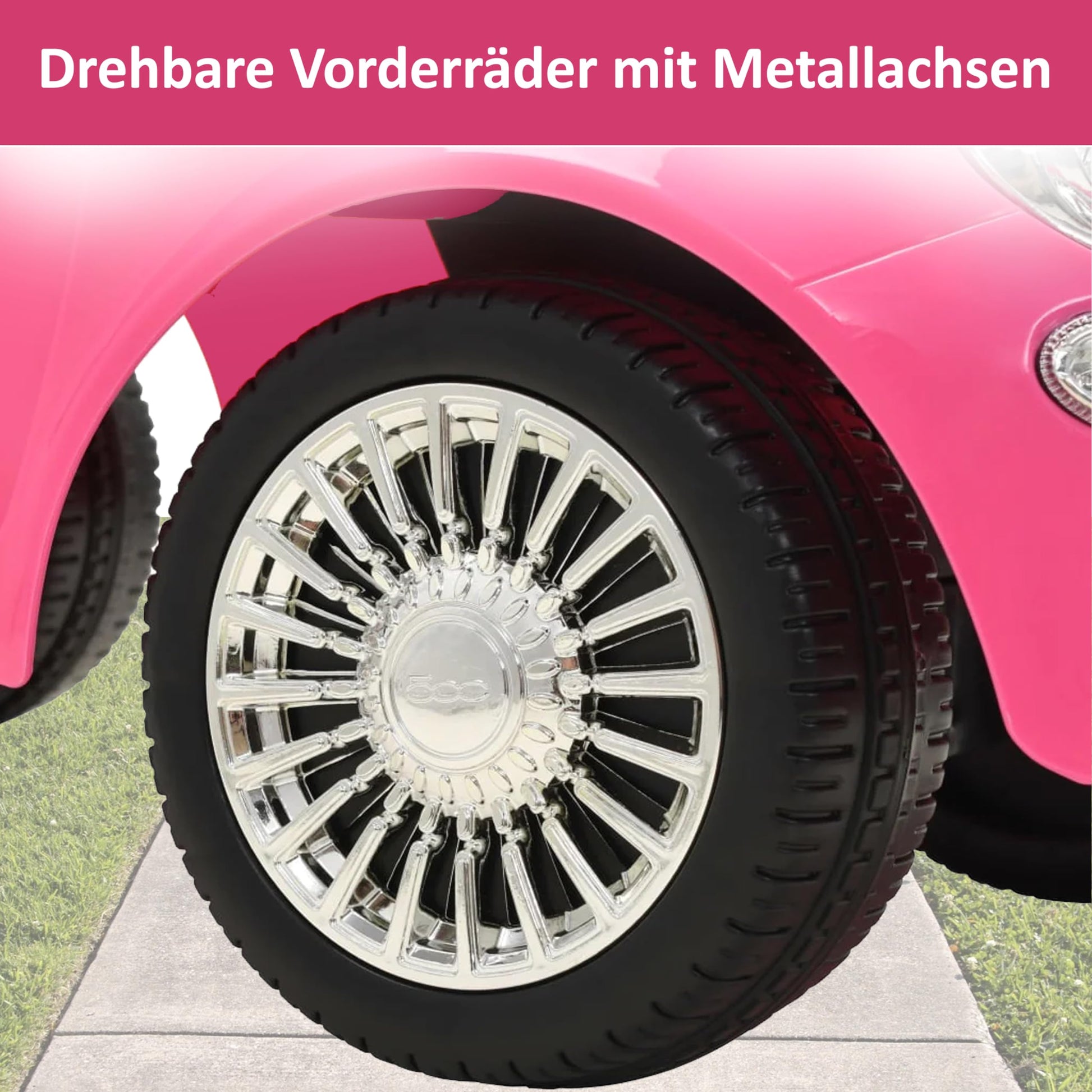 COIL FIAT 500 - Officially Licensed car with storage compartment under the seat, push and pull handle, various sounds -Bobby Car push handle -Bobby Car steering wheel -Toddler ride-on car (pink)