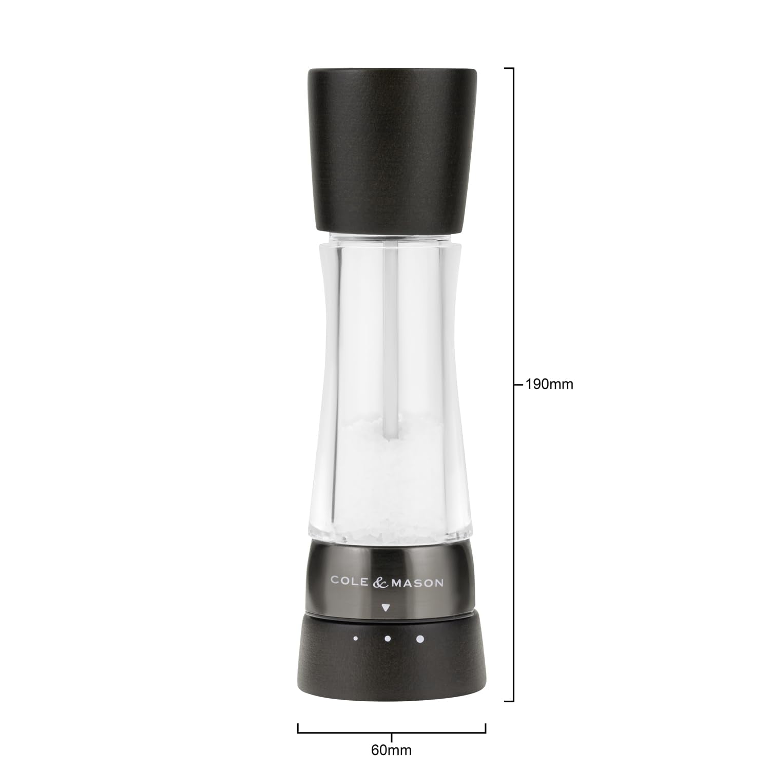 Cole & Mason Derwent Dark Wood Salt and Pepper Mill, Spice Grinder, 2-Piece Set Manual with Adjustable Ceramic Grinding Mechanism, Stainless Steel/Acrylic, 190mm, Precision+, Gift Set
