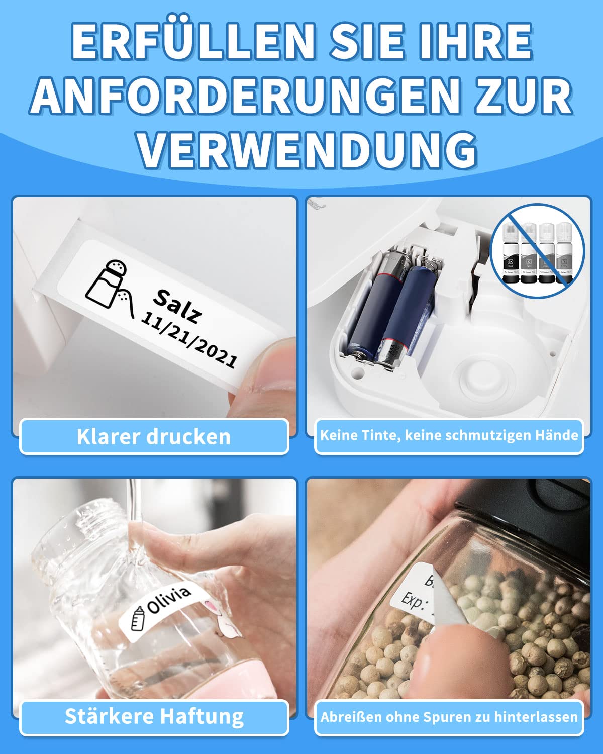 "Save money and time: Save your money! The wireless self-adhesive label maker does not require expensive ink cartridges, only our Colorwing thermo sticker label paper. It can be cleanly printed and leaves no residue after removal. Save your time! Support batch printing with one button. Get the desired stack of labels faster instead of printing them individually."
