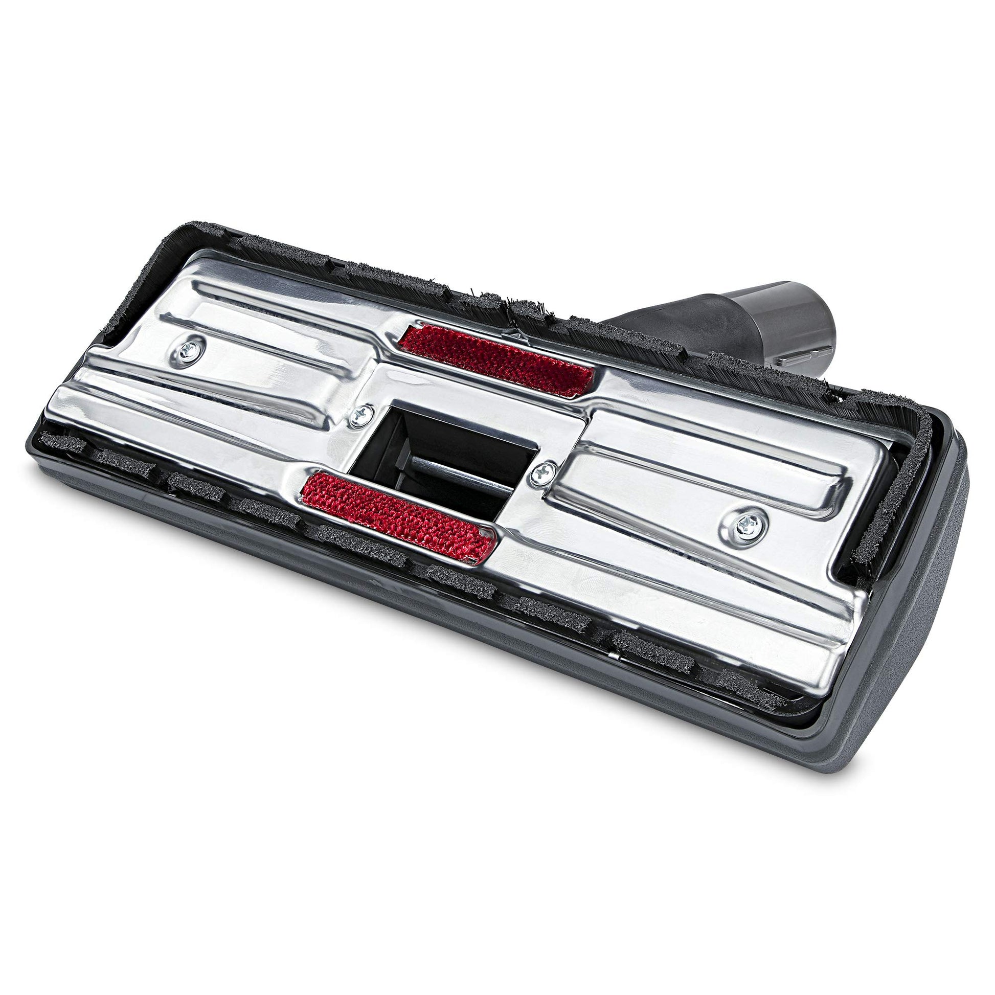 with steel sole including 2 air channels (edge suction / optimal particle uptake across the entire width of the nozzle) and 2 thread lifters for fiber, lint and hair uptake