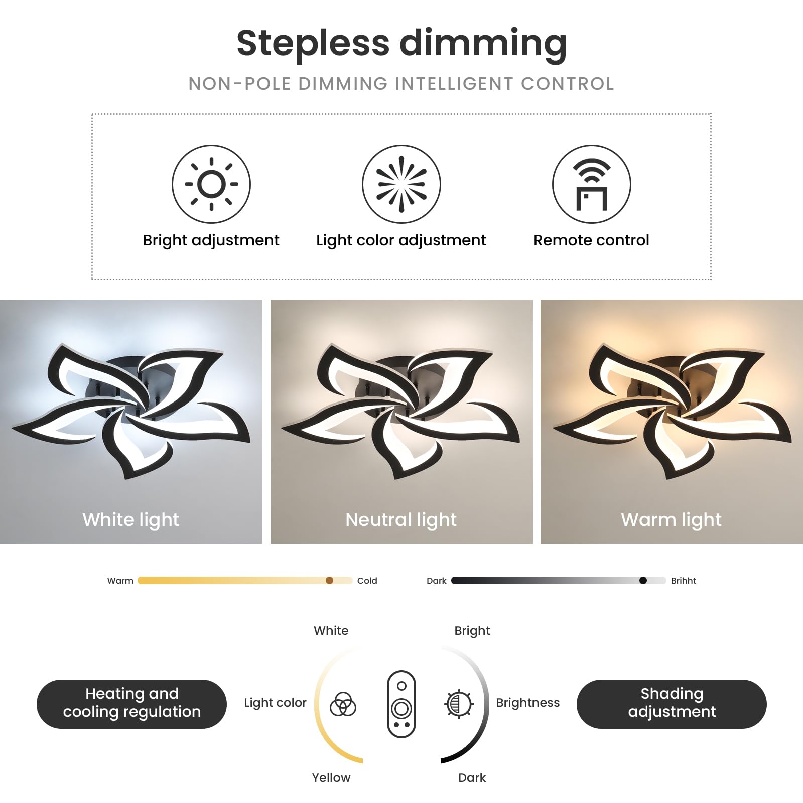["✿ Creative Design: Creative Flower Shape Design, beautiful and generous modeling, elegant and dynamic, LED ceiling light is not only a practical lighting tool, but also creates a comfortable and cozy atmosphere for your living environment","✿ Intelligent Control and Stepless Dimming: our ceiling light is dimmable with 3 types of control, switch/remote control/APP, intelligent remote control, adjustable brightness and light color, you can adjust between 3000k warm white and 6500k cool white, create your own ambient lighting","✿ LED Ceiling Light Parameters: dimmable modern ceiling light, Dimensions: 24 x 24 x 3 inches; Voltage: 220V; Power: 60W; Luminous Flux: 6000LM; Color Temperature: 3500K-6000K; Average Life: 50000 hours; Lighting Area: 161-215 sq.ft","✿ High-quality living room lights: metal housing, corrosion-resistant and rust-free, acrylic lampshade, soft and uniform light, no flicker and no glare, high light transmittance, can meet the daily needs in the house","✿ Wide Range of Applications: dimmable LED ceiling light can be used in a variety of places and is the perfect light for living room, bedroom, hotels, restaurants, dining room, cafes, bars and also for everyday activities such as reading, playing and sleeping"]