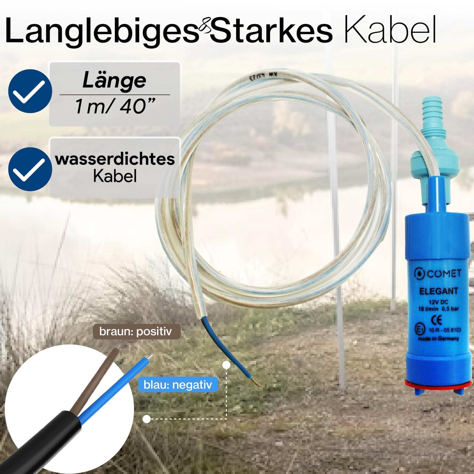 Comet Elegant Water Pump 12V with Check Valve (Fixed) + Filter - Set with Camping Ebook - for Motorhome, Caravan, Submersible Pump