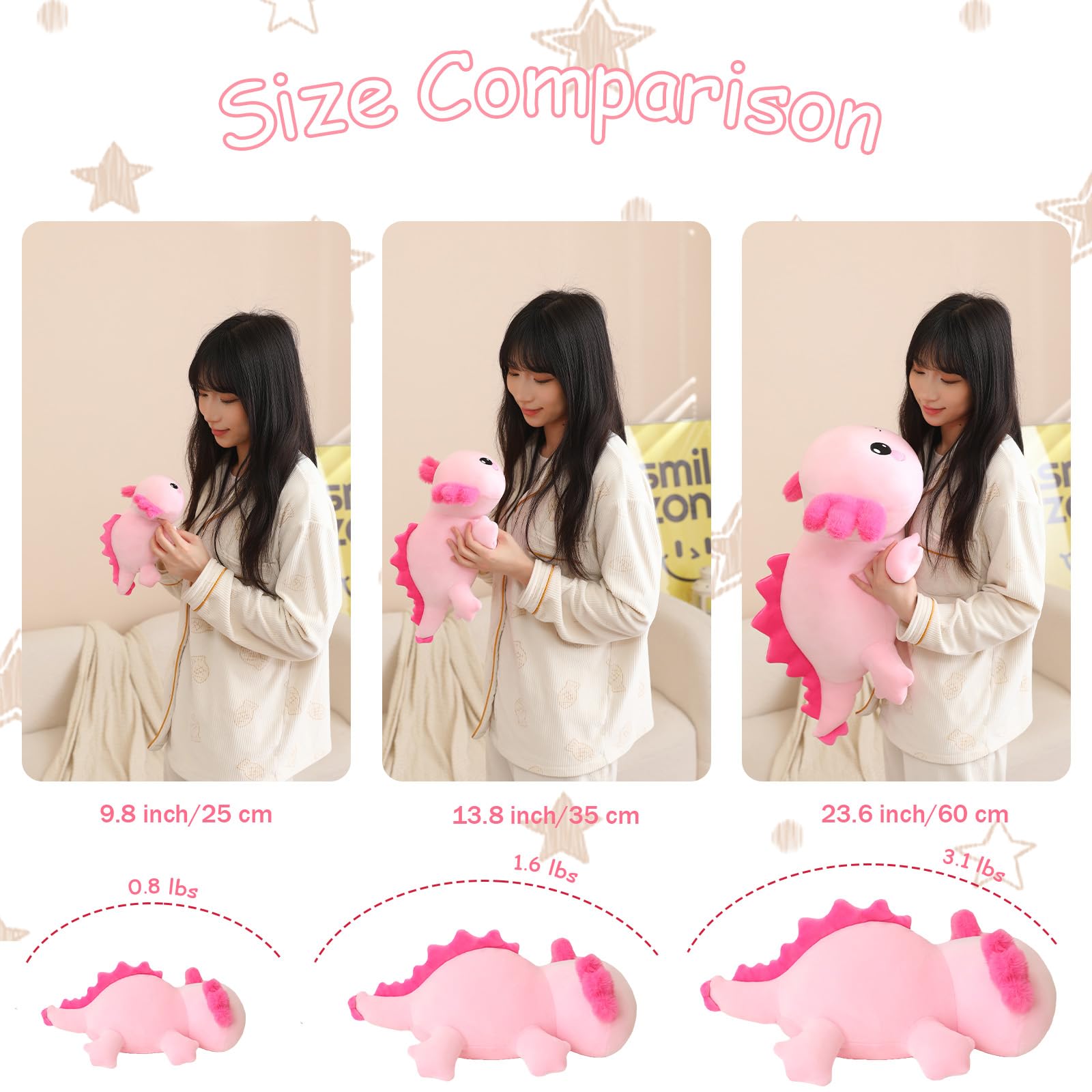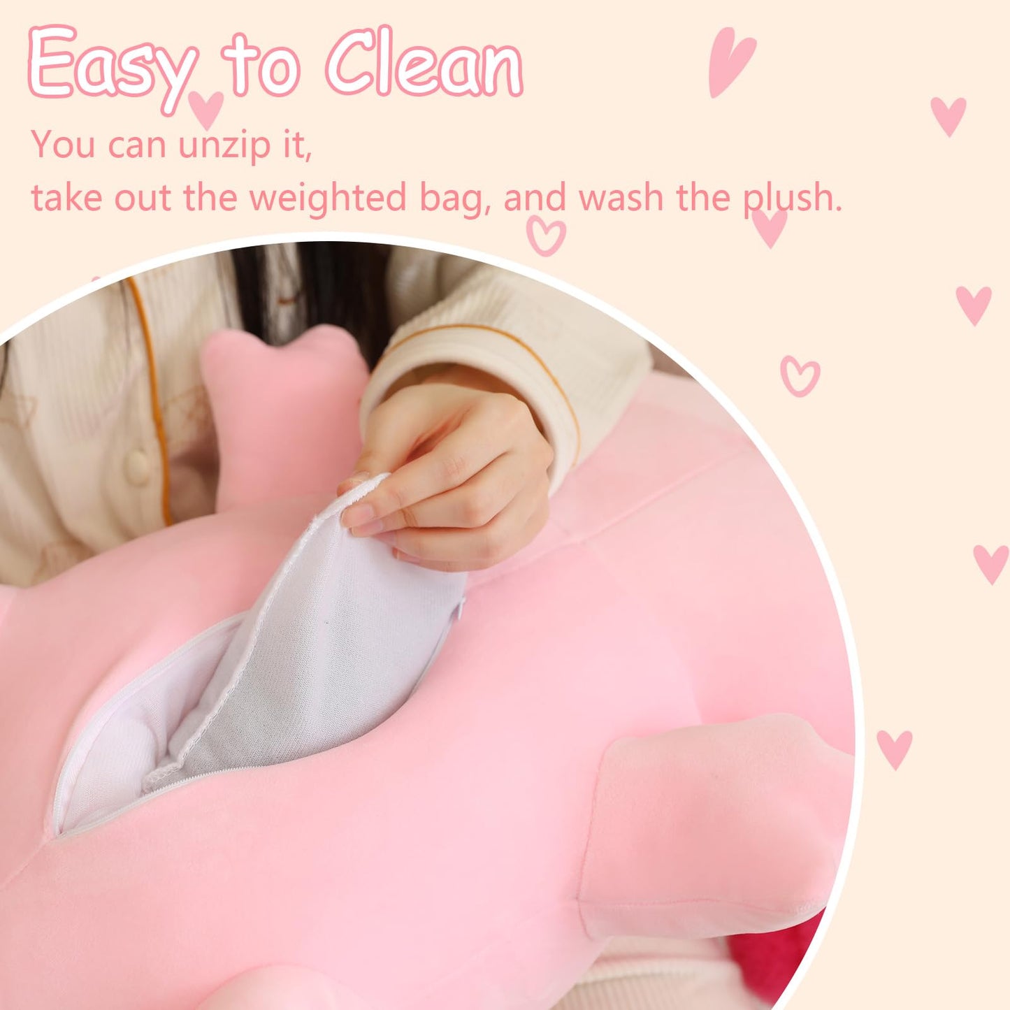 "Safe Material: The pink Axolotl weighted plush toy is made of cotton and plush materials, providing a comfortable and pleasant experience. Soft plush PP cotton match with weighted beads on the bottom, this is a real weighted axolotl plush."