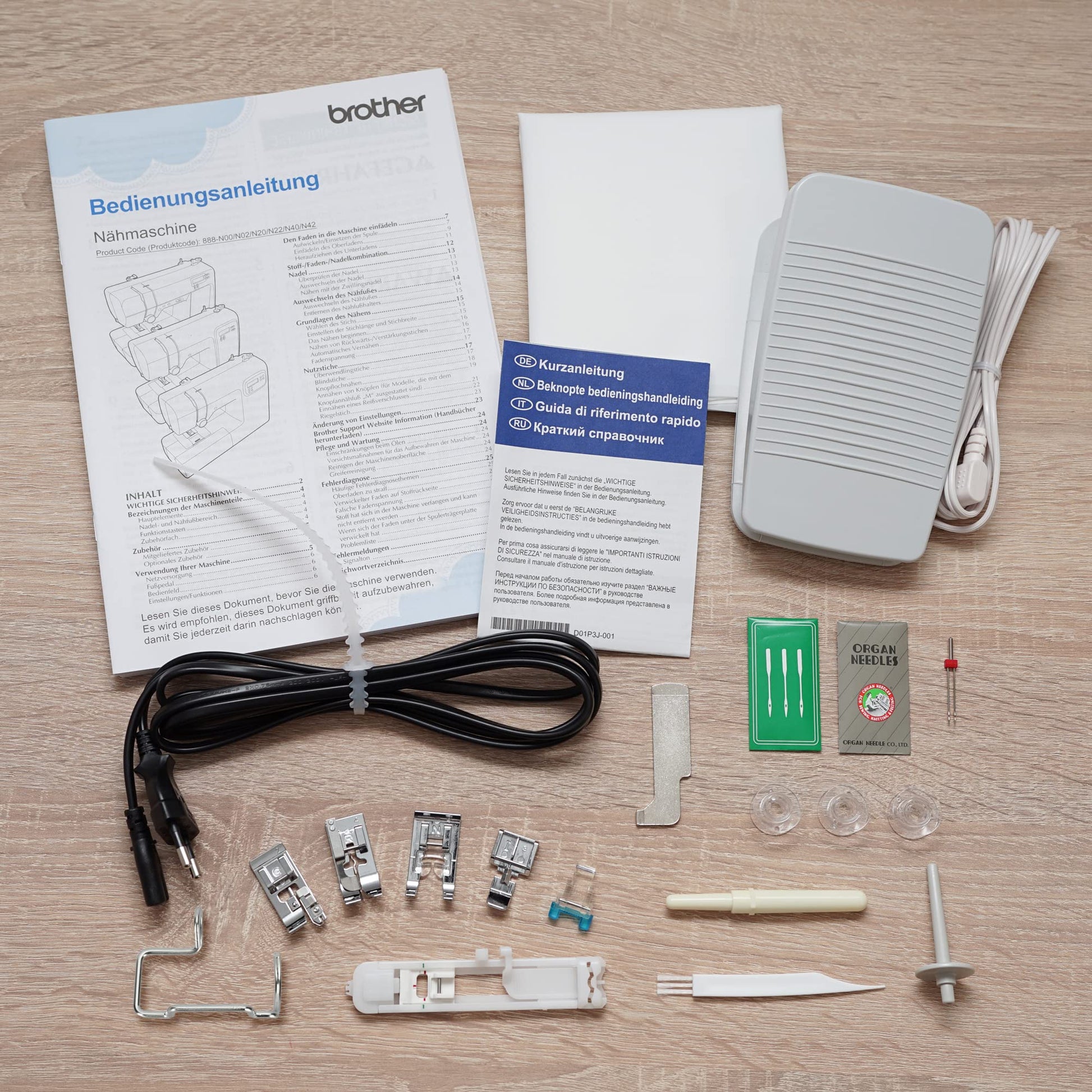 ["Electronic sewing machine including finger protection for beginners AND advanced users, sewing course & sticker sheet with top price-performance ratio","Electronic sewing speed controller, 39 programmed stitches, including 5 one-step buttonhole variations, (pseudo) overlock stitches for sewing elastic fabrics like jersey & a variety of decorative stitches","Large LCD display with buttons for adjusting stitch length and width, finger protection for safe sewing, eye-friendly LED sewing light, needle stop position up/down, and more","Includes extensive sewing course material for 3 great sewing projects with instructions, fabrics, practice sheets & stickers for styling the machine","The sewing machine for the whole family - brother brand quality with 3 years warranty","Needle threader for the upper thread","Needle stop position up/down","Model Note: The brother FS40s is the successor model of the computerized sewing machine brother FS-40, which we have sold at this location in recent years. The new model is almost identical in functionality to the successor model, but additionally has a needle threader for the upper thread (yay)!"]