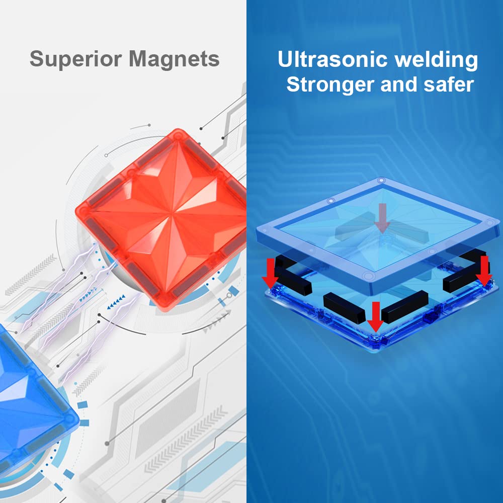 ["Safety of children comes first"] Our products are made from high-quality durable ABS plastic that does not contain BPA, phthalates, or latex and can withstand years of indoor and outdoor play. Our ultrasonic welding and press seal processes keep strong magnets in place.