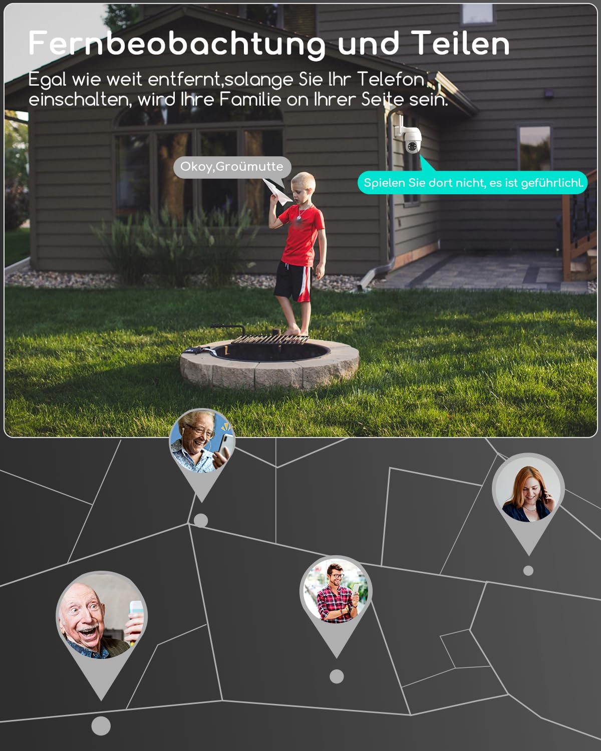 【Real-time Remote Monitoring】This outdoor security camera with a 360° viewing angle can cover all areas, so all suspicious behaviors cannot hide anywhere. You can access our wifi camera from anywhere to control it via the app, such as changing the viewing angle, communicating with visitors, seeing what's happening in real time, and sharing with your family to ensure the security of your home.