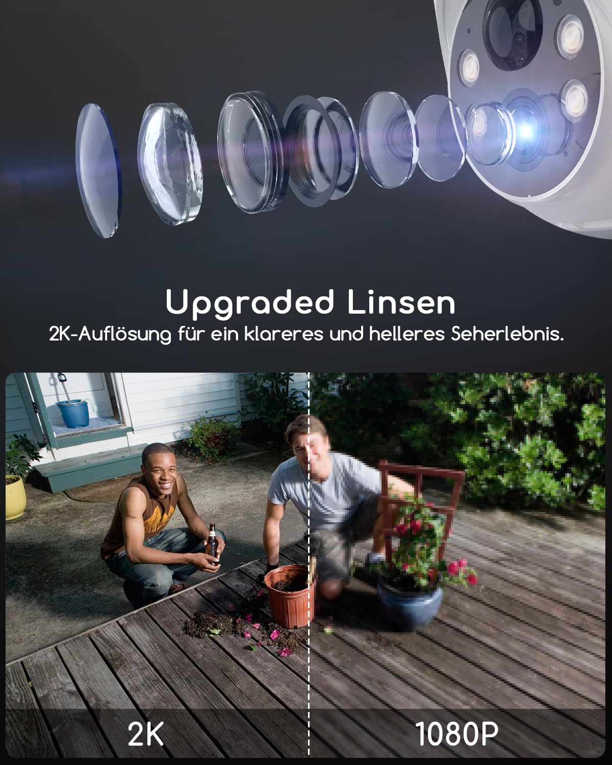"【2K FHD and Color Night Vision】This outdoor wifi security camera is equipped with a 2K resolution and 4 combo lights to deliver a sharper and smoother image quality than 1080p. And when you turn on the smart or color night vision mode, you can easily capture important details of an incident at night, even when there is no lighting (e.g. clothing color, vehicle color, camouflage methods, suspect features), providing valuable information to the police.