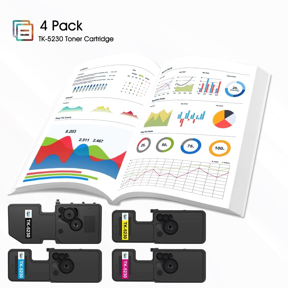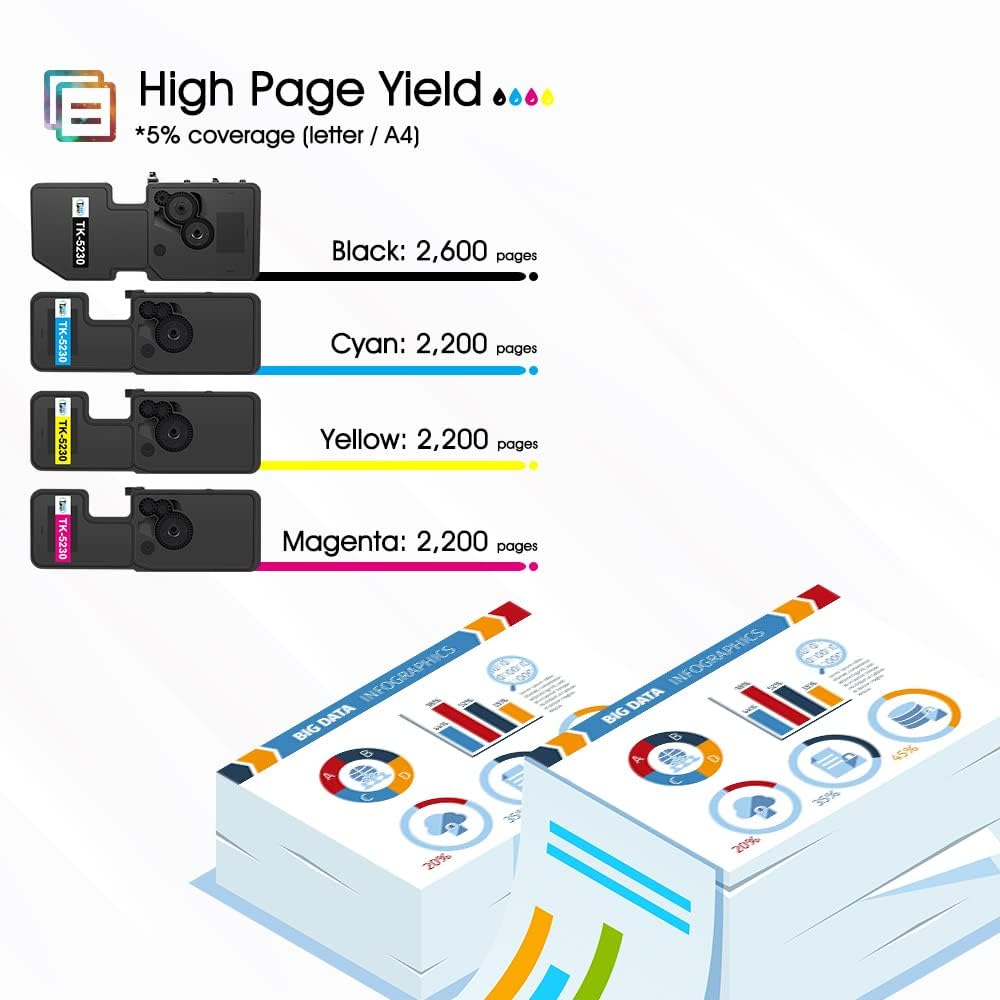 ["Package Contents: Compatible for TK 5230 TK5230 TK5230K TK5230C TK5230Y TK5230M TK 5220 TK5220 TK5220K TK5220C TK5220Y TK5220M Toner (With chip, not original)","Compatible Printers: Ecosys M5521cdn M5521cdw P5021cdn P5021cdw M5521 P5021 Printer","Toner Color: 1 Black TK-5230K TK-5220K, 1 Cyan TK-5230C TK-5220C, 1 Yellow TK-5230Y TK-5220Y, 1 Magenta TK-5230M TK-5220M Toner Cartridges","Toner Cartridge Yield: approx. 2600 pages TK 5230K 5220K (Black), approx. 2200 pages (Color) per TK 5230C 5230Y 5230M 5220C 5220Y 5220M Color Toner Cartridge (Letter / A4, at 5% coverage)","Easy to Install, The TK-5230 TK-5220 Toner Cartridges are filled with high quality toner to ensure print quality Wrong Produc"]