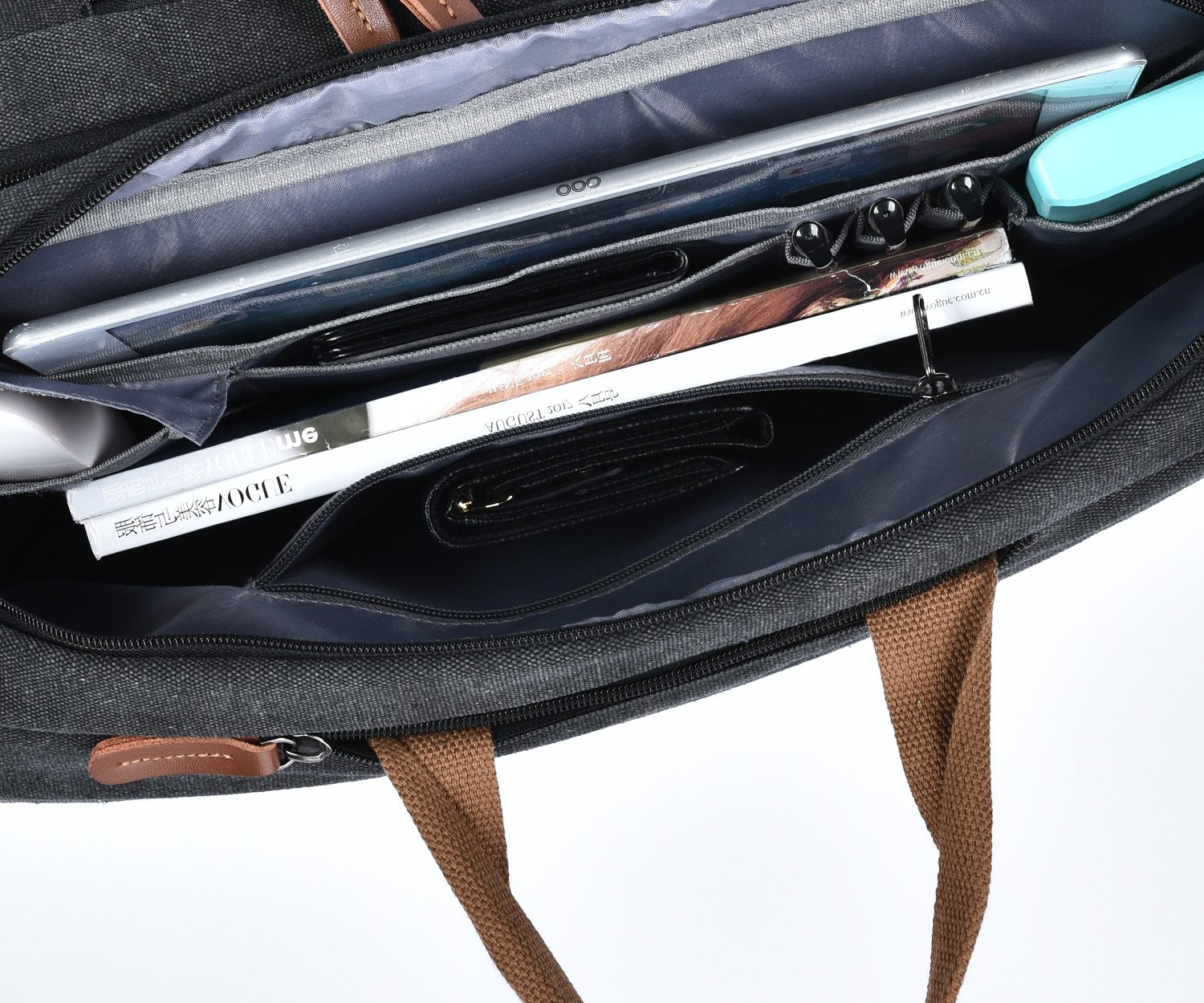 "Dimension: approx. 19 x 14.5 x 3.5 inches; Laptop compartment: approx. 17 x 12 x 1.5 inches. Fits up to 17.3 inch laptop","Fits up to 17.3 inch laptop. Huge and reasonable space. One laptop compartment holds a 17.3 inch laptop, two layers of shockproof padding keep the laptop safe. Document compartment with multiple pockets inside, accessories are stored reasonably.","Multifunctional and convertible pockets can help you transform different carrying styles whenever possible, such as backpack, messenger bag, briefcase.","Spacious laptop compartment and accessory compartment. Special design of laptop compartment with flexible belt provides more protection for your laptop. Still enough space for 3 days' clothes for travel. Spacious enough for your needs.","Built-in shockproof waterproof foam can always protect your precious items such as laptop, iPad, etc. from collision. With the exclusive canvas fabric, it can be more durable."