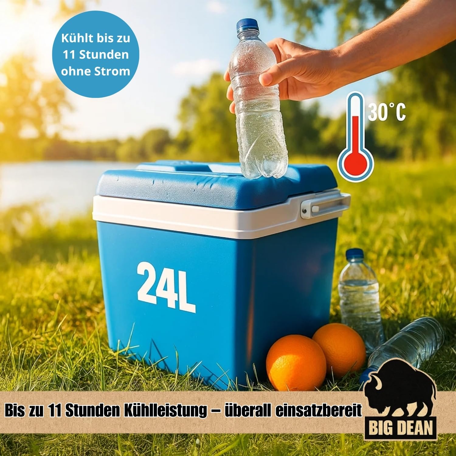 Spacious interior: The cooler offers 24 liters of volume - ideal for families, picnics, and travel with plenty of space for food and drinks