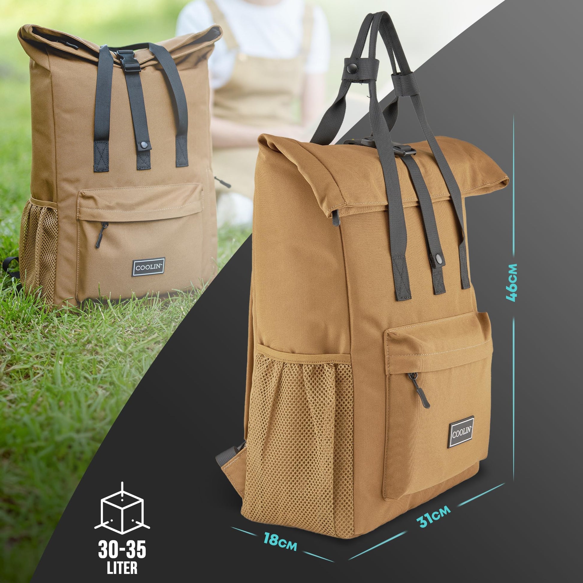 Coolin' Cooler Backpack 30L | Backpack with insulated compartment for beer, picnic, drinks & more | Cooler bag as a backpack - practical & easy | Thermo backpack for beach or hikes (Brown)