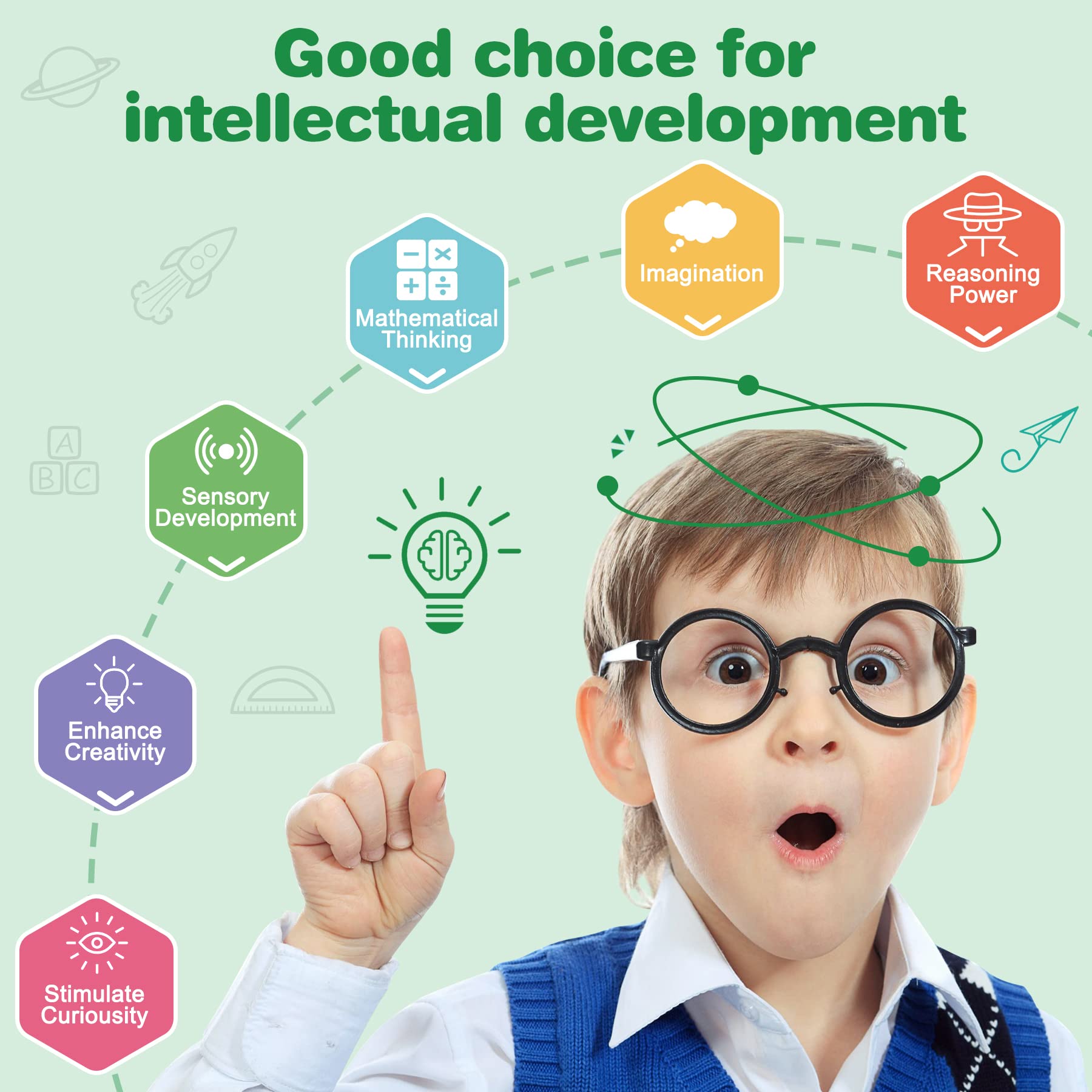 ["Magnetic building block meets creative needs: Use this magnetic toy to create a variety of architectural, robot, car, airplane, rocket, ferris wheel, animal, ball, house, and plant patterns. The strong magnetic structure of the magnetic blocks makes them more stable and contributes to improving hand-on ability and hand-eye coordination."]