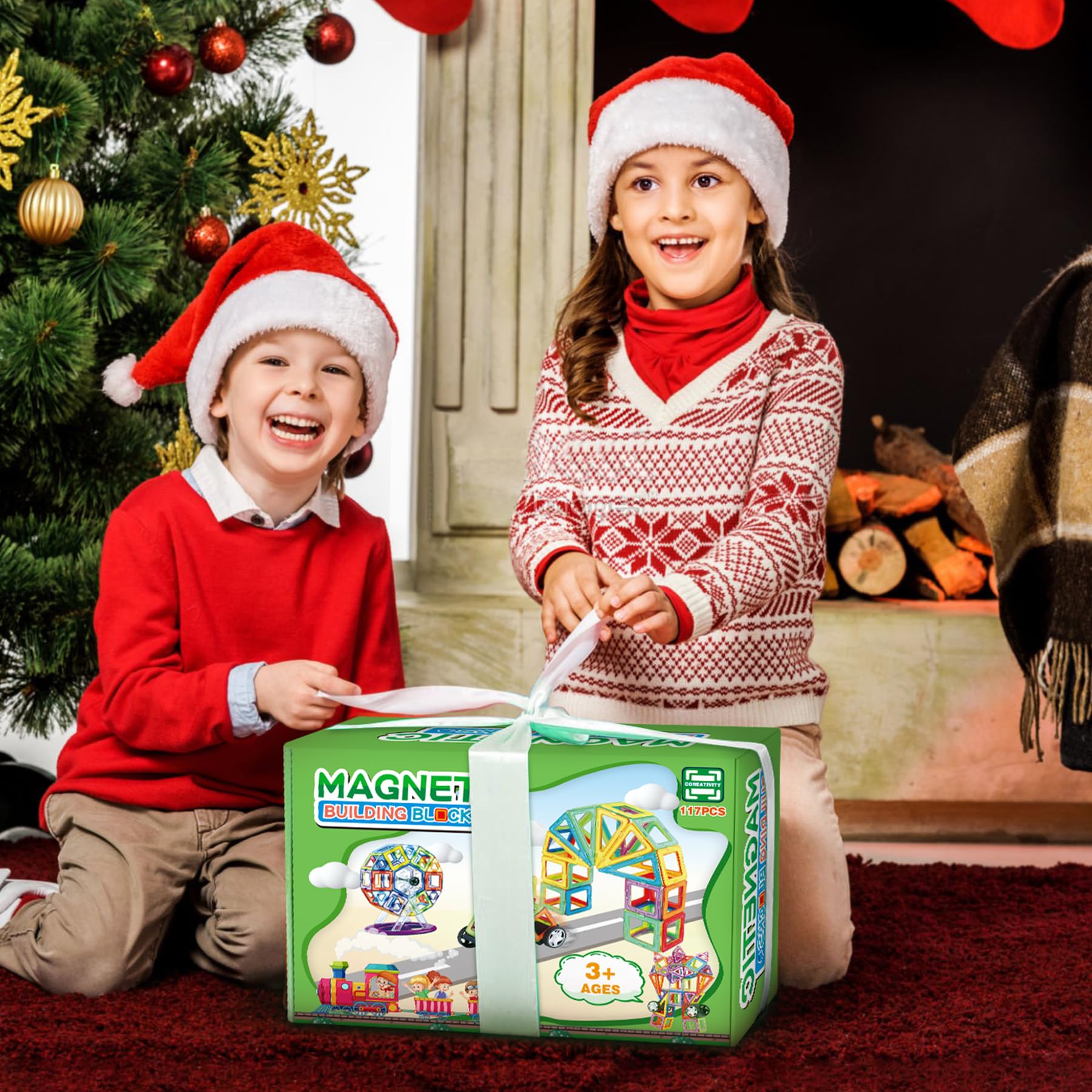 COOLJOY Magnetic Building Blocks Set, Magnetic Building Blocks Educational Gift for Kids, Magnetic Building Blocks Car Toy (117PCS)