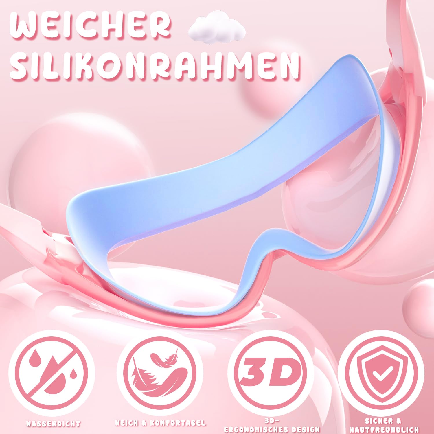 【3D Ergonomic Design & Waterproof】 Our kids diving goggles for 4 years old have an ergonomic mask design. The silicone seal of the kids diving goggles for 6 years old comfortably adapts to the child's face from all sides, reducing pressure around the eyes to prevent "panda eyes" and creating a waterproof seal.