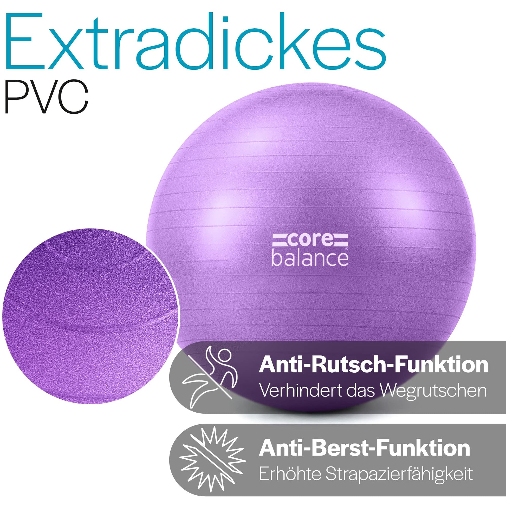 Core Balance, burst-resistant exercise ball - for fitness yoga pregnancy - 55cm 65cm 75cm 85cm - includes air pump.