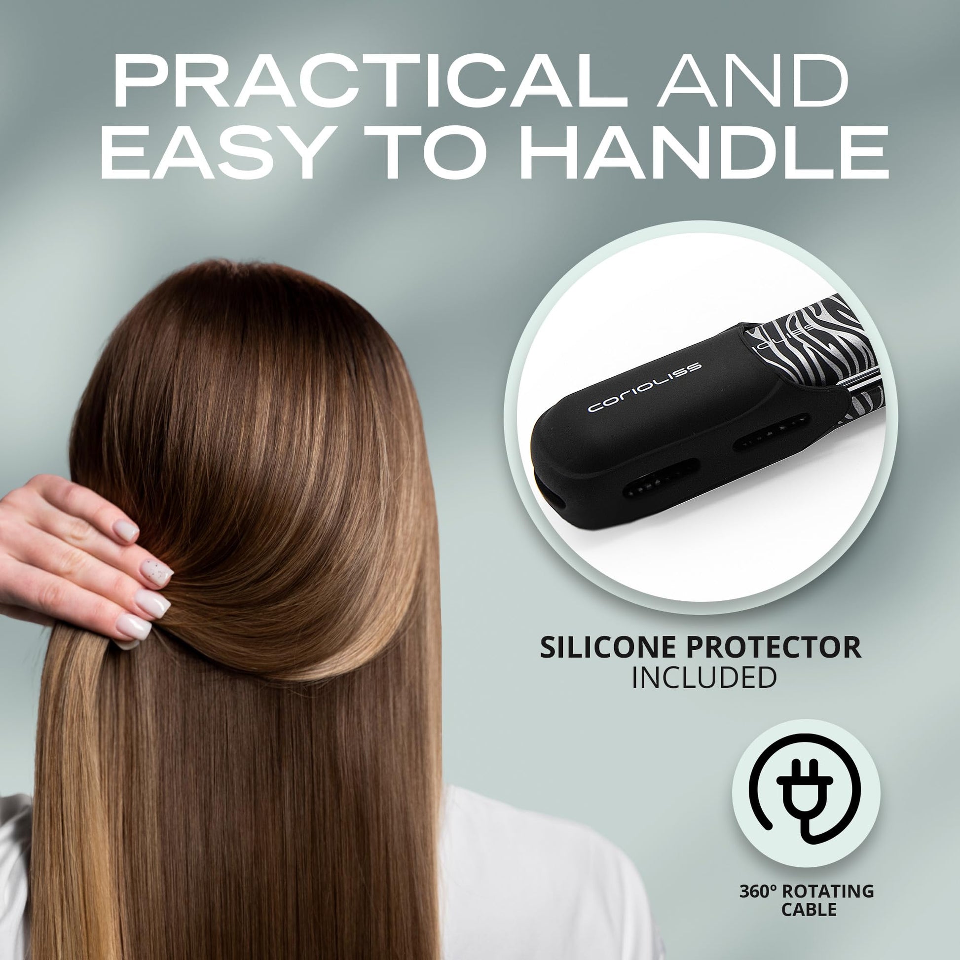 Corioliss C-Style flat iron is designed for women with fine hair. It features titanium plates and professional temperature control for optimal results.