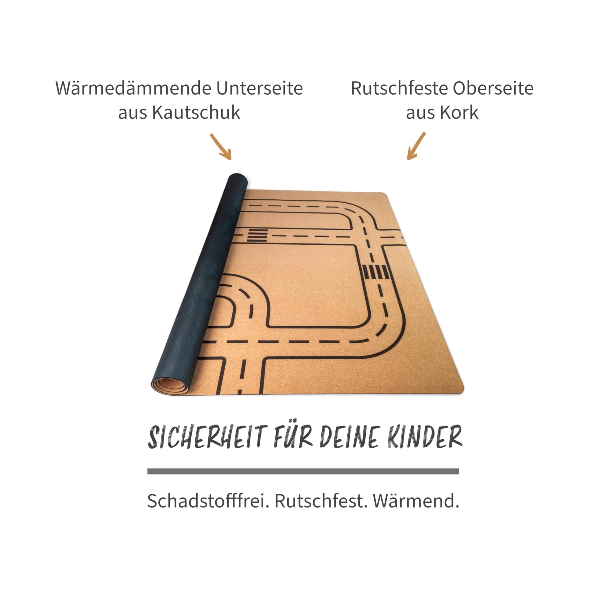 Cork play mat. Non-toxic crawling mat for babies and kids. Road 160x110 cm.