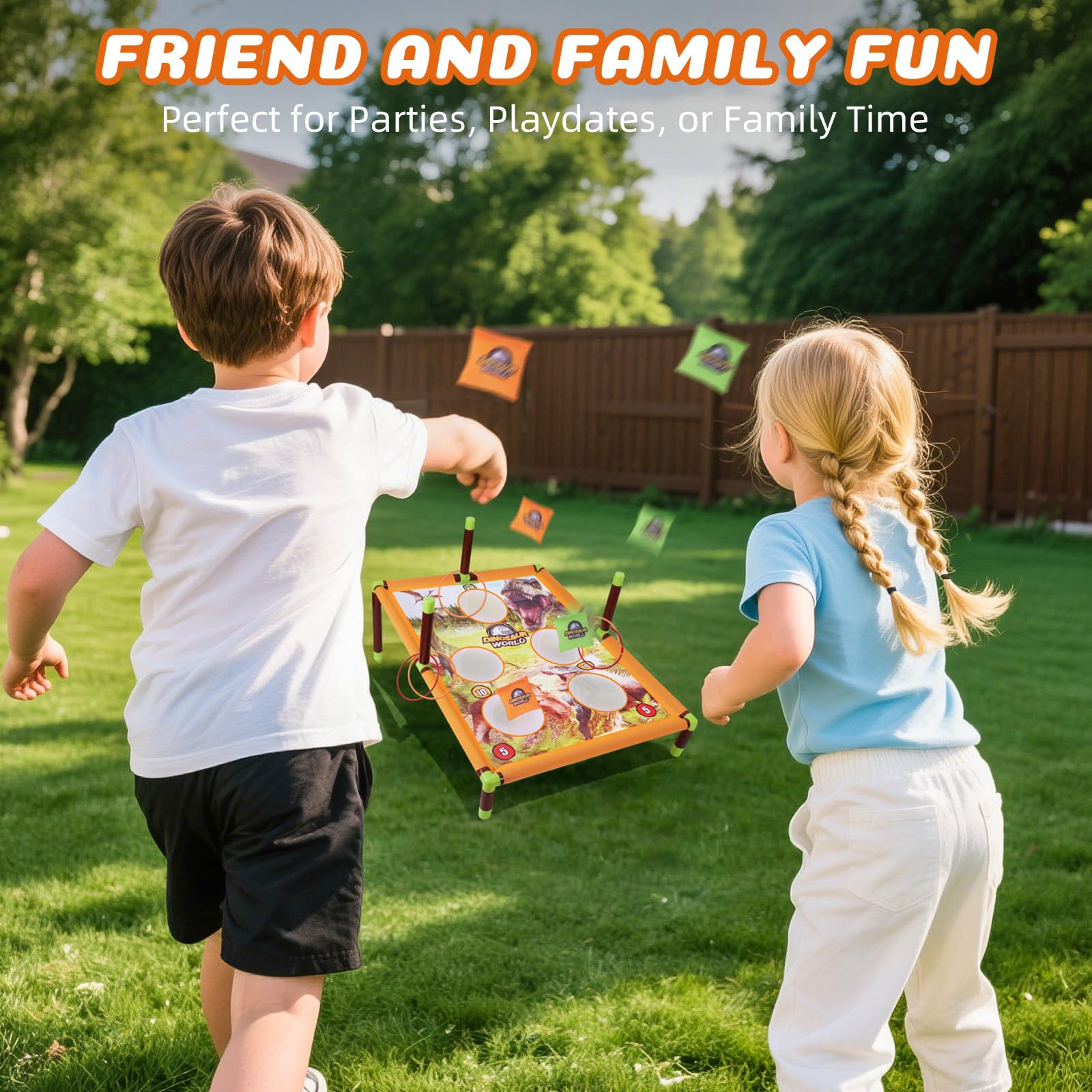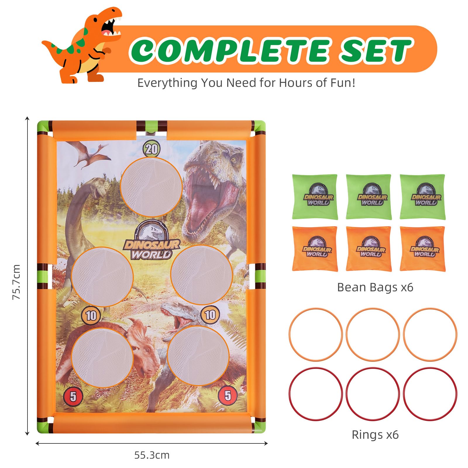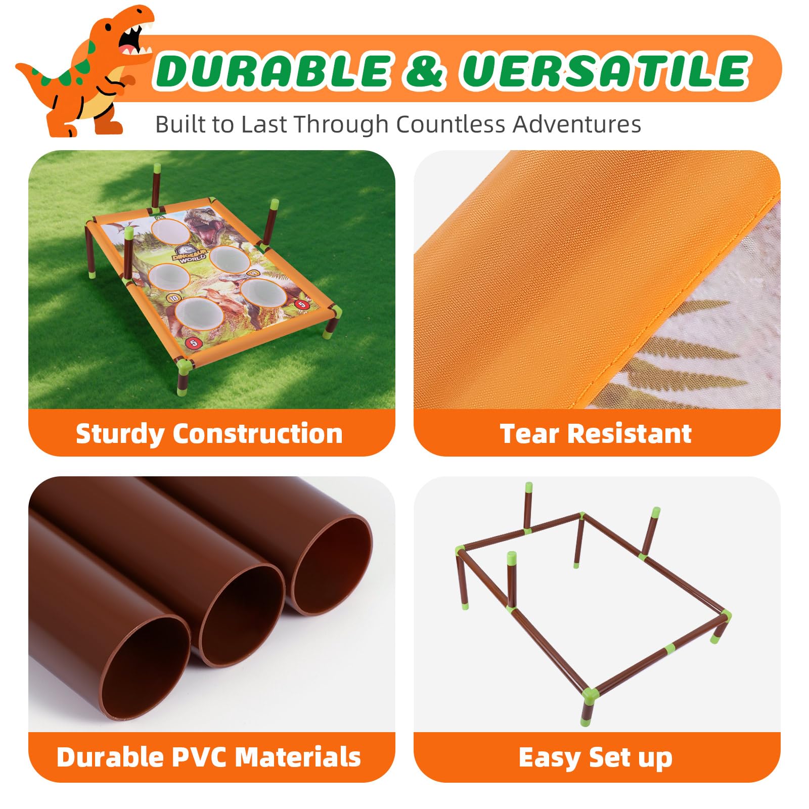 Cornhole game set with 6 bean bags and 3 balls, bean bag toss outdoor garden toy, portable 5-hole cornhole board toy for family kids outdoor activities (dinosaur).
