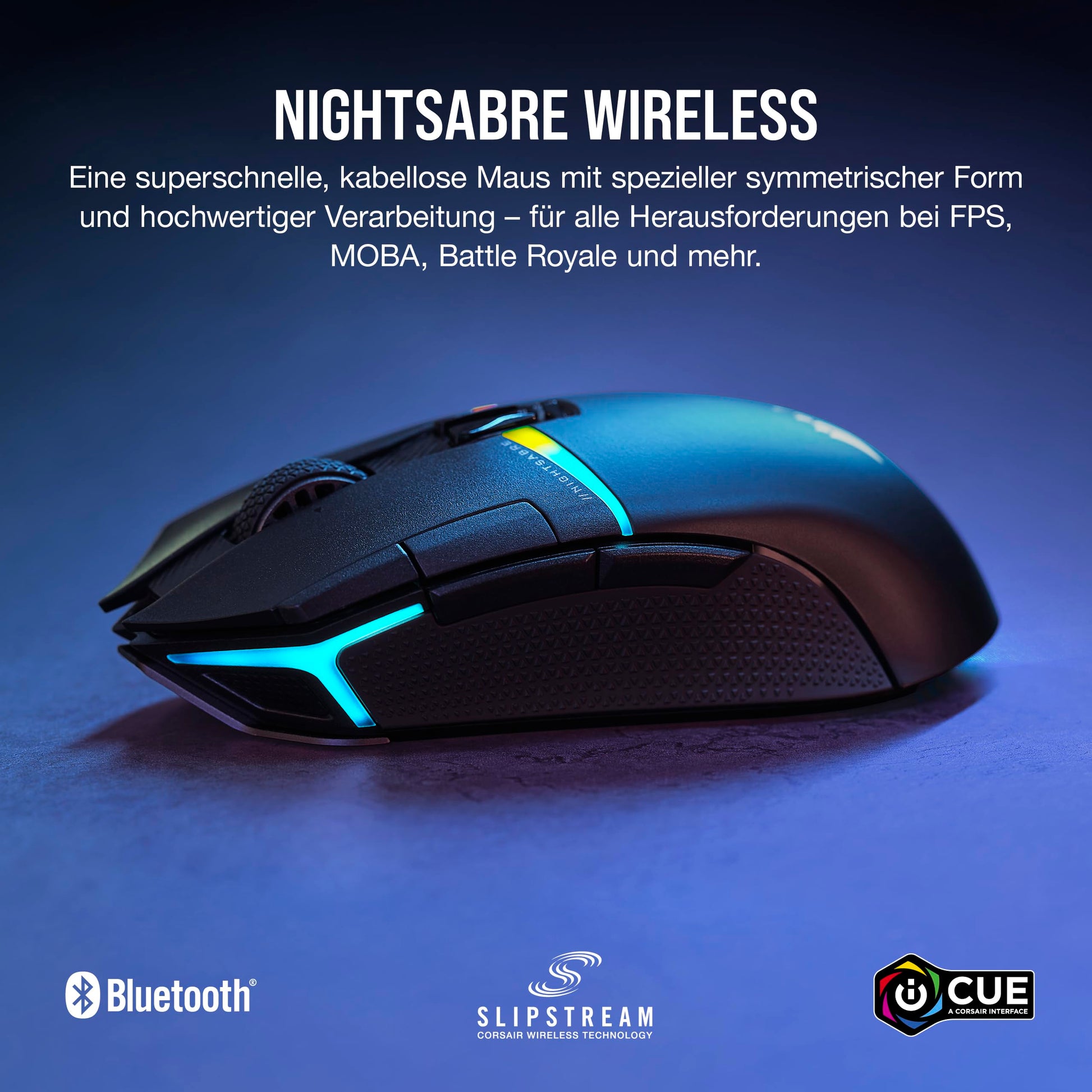 CORSAIR NIGHTSABER WIRELESS RGB FPS/MOBA Gaming Mouse - 26,000 DPI - 11 Programmable Buttons - Up to 100 Hours of Battery Life - iCUE Compatible - PC, PS5, PS4, Xbox - Black