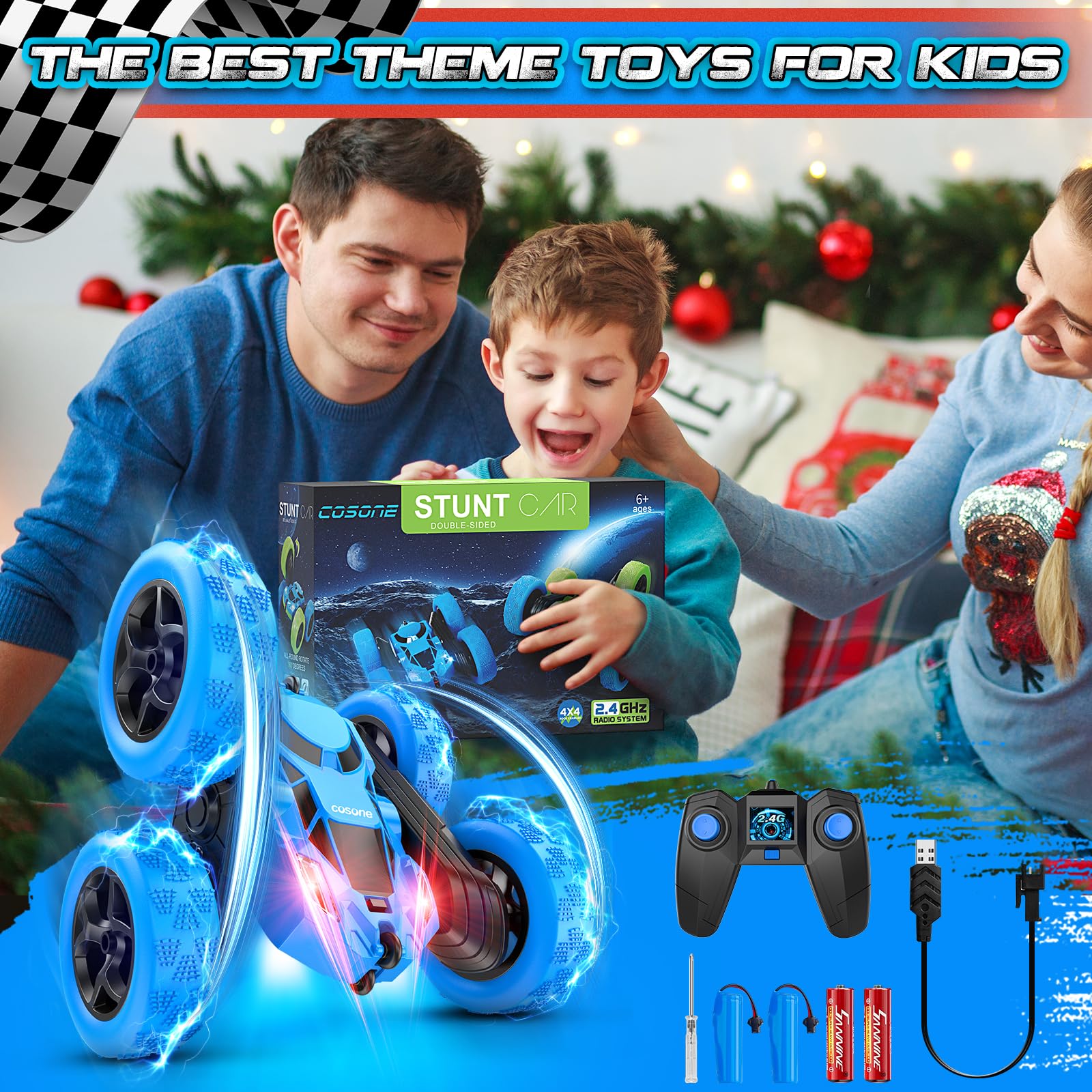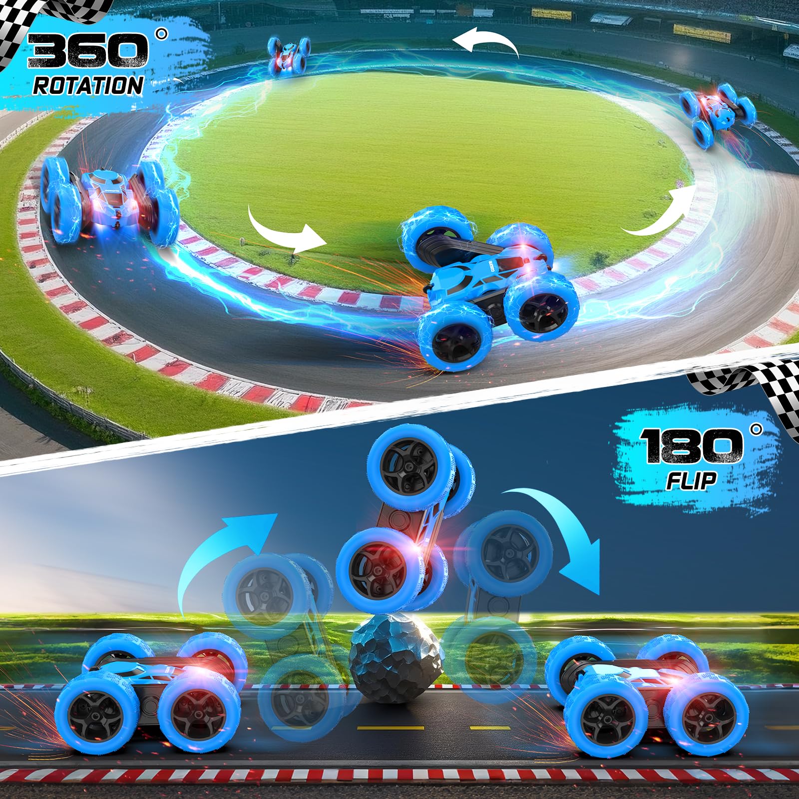 Cosone Remote Control Car, 2.4 GHz RC Cars with headlights, All-wheel Drive Off-road Stunt Car, Double-sided 360° Rotatable Car Toy, Gifts for Kids 6+ Years Old (Blue)