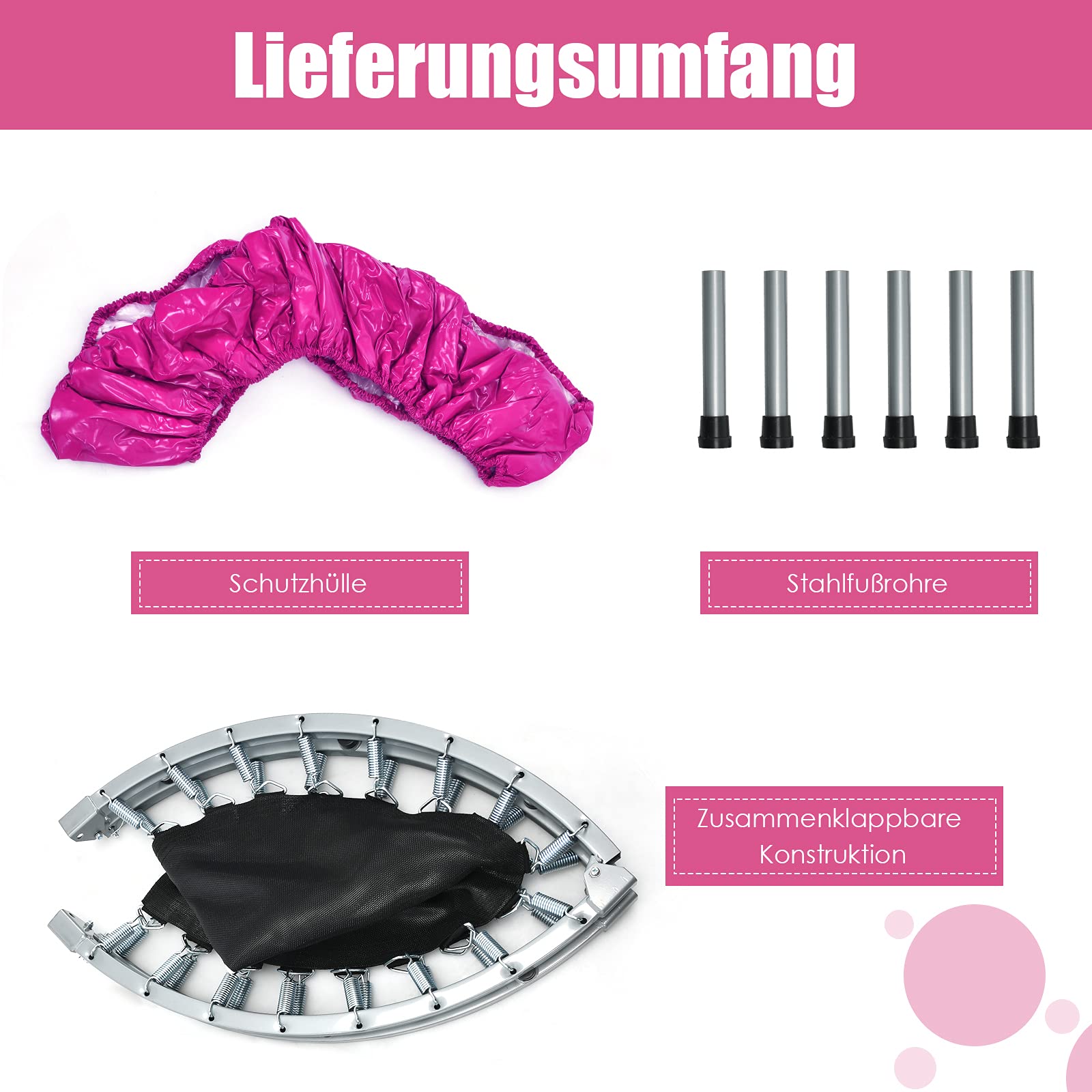 COSTWAY Φ97cm Mini Trampoline, foldable fitness trampoline, children's trampoline up to 150kg, garden trampoline indoor for kids and adults (Pink)