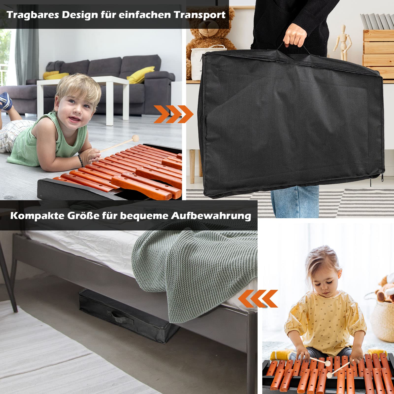 "【Easy Assembly & Transport】 Thanks to the bag, you can take the instrument with you anytime and anywhere. The compact and space-saving design allows for easy storage.",