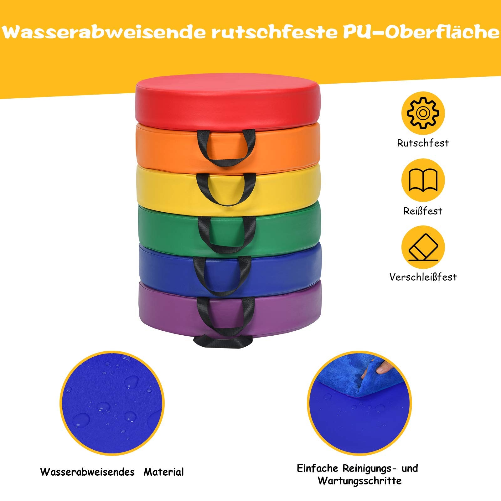 COSTWAY 6 Piece Kids Chair Cushion Set with Handle, Floor Cushions with Zipper, Seat Cushions Multicolored, Booster Seat Cushion for Children's Room and Preschool (Round, Colorful)