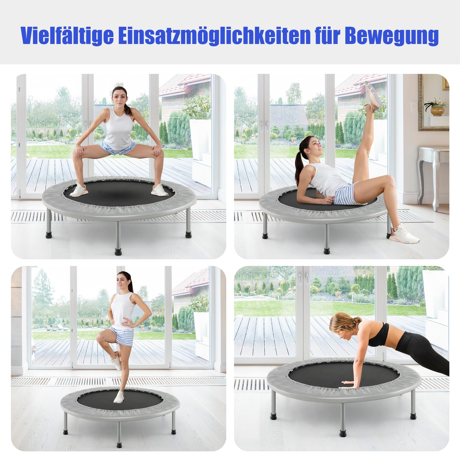 "【Easy assembly and disassembly】 With the detailed instructions, assembly is effortless. The trampoline can also be quickly folded up and stored under the sofa or bed.",