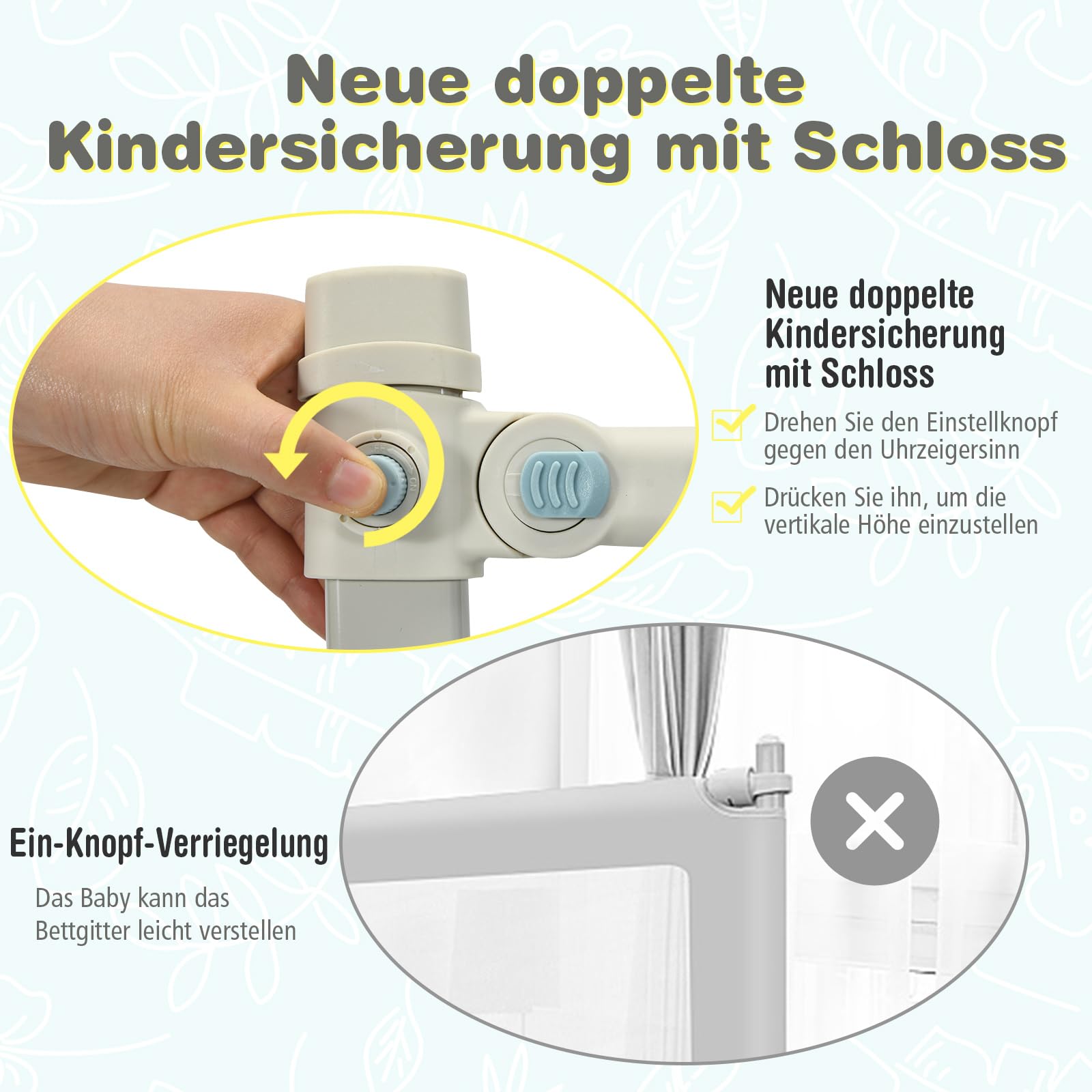 🐣【Safety first】Made of breathable mesh fabric, the safety guardrail ensures sufficient air circulation, while the reinforced support legs provide additional safety. The rounded corners and cotton material also protect children from injuries due to accidental bumps.