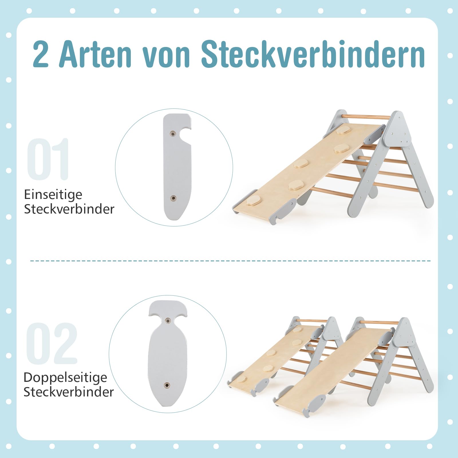 ["【Diverse combination options】 This Montessori climbing set consists of a climbing triangle, a climbing arch, and a ramp. All parts can be used together or separately, depending on the children's preferences. The various combinations provide endless fun.","【Durable material and safe design】 Made of natural beech wood, which is durable and safe, the wooden climbing structure promises a longer lifespan. In addition, the edges are smooth and the surface is free of burrs. This allows toddlers to play safely with this triangle climbing set.","【2-in-1 climbing ramp and arch】 The ramp features a double-sided design, allowing children to slide or climb as they please. When you combine the ramp with the climbing triangle, you can provide different height options for your children. Additionally, you can transform the climbing arch into a seesaw by reversing it.","【Solid and reliable construction】 The climbing triangle, climbing arch, and ramp are designed with sturdy structures to prevent children from falling during play. In particular, the secure connections enhance overall stability.","【Perfect gift for toddlers】 The wooden climbing toy set is a perfect gift for children aged 1 year and older. Children can enhance their balance, learning, social, and other skills while playing with the wooden climbing triangle set."]