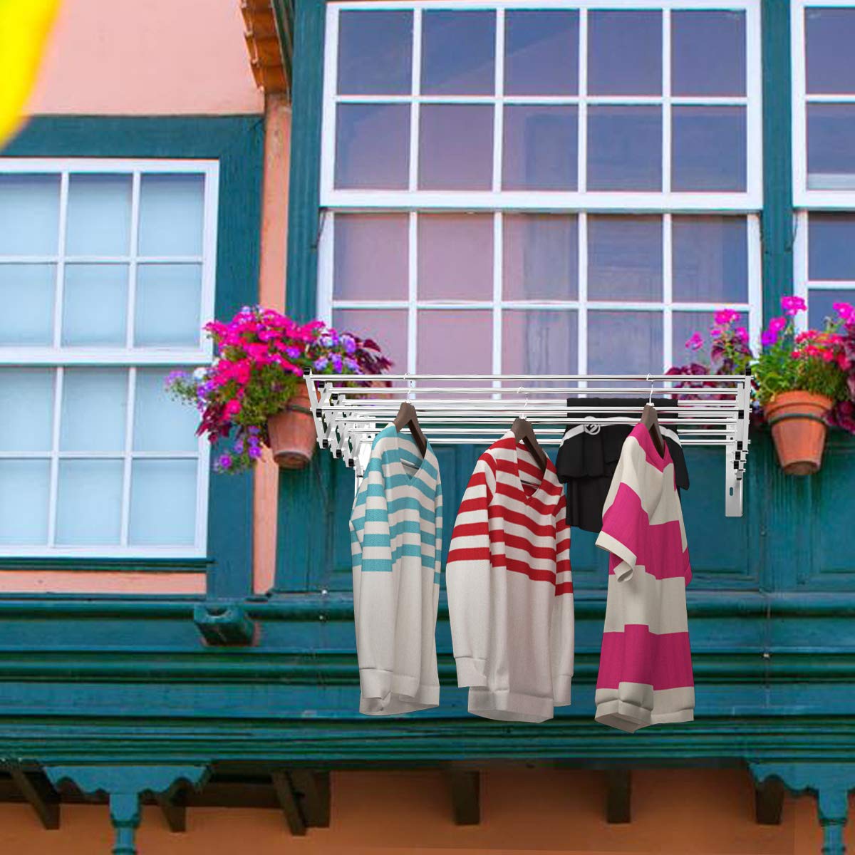 COSTWAY wall-mounted drying rack made of stainless steel with 8 rods, space-saving wall laundry dryer, load capacity 25 kg, for laundry room, bathroom.