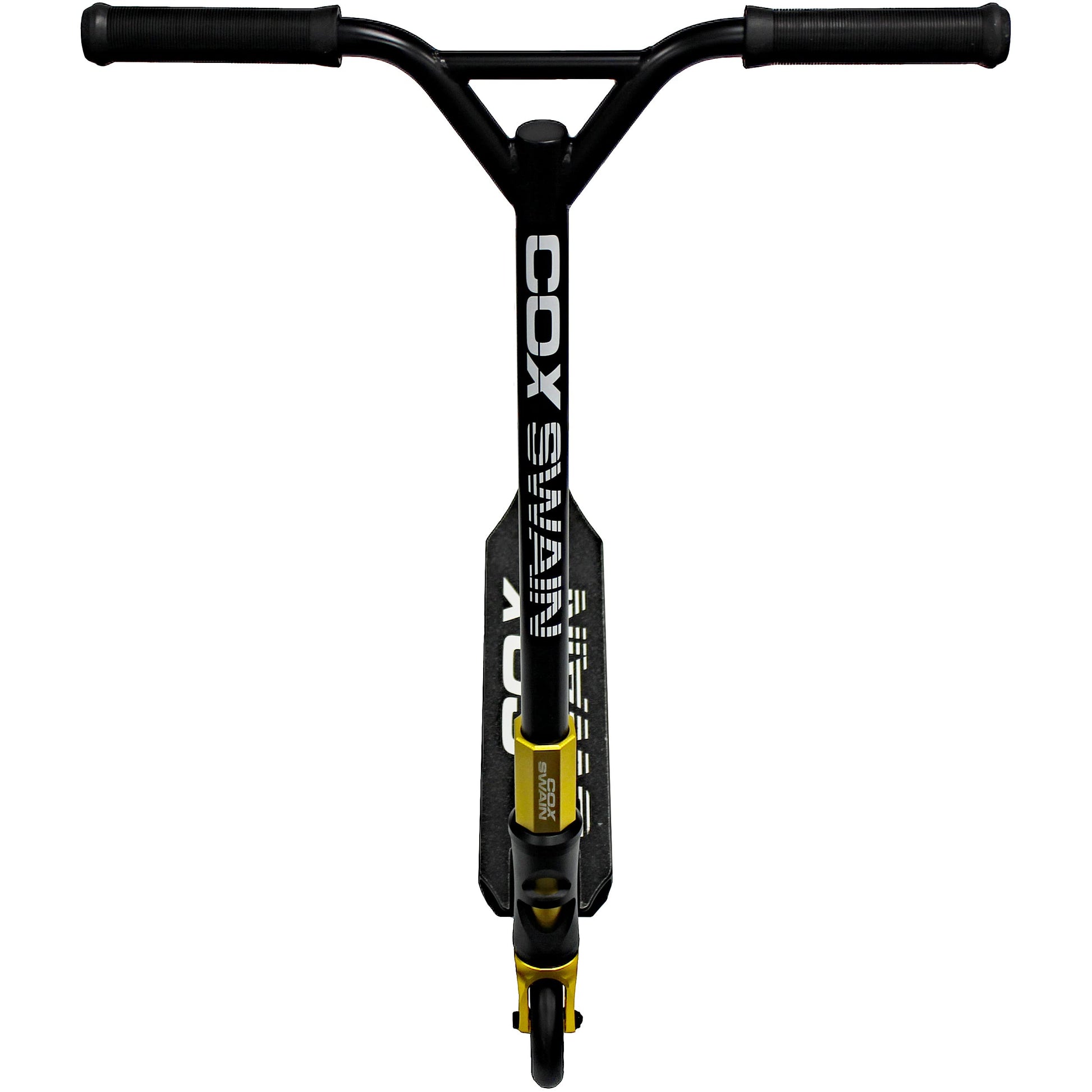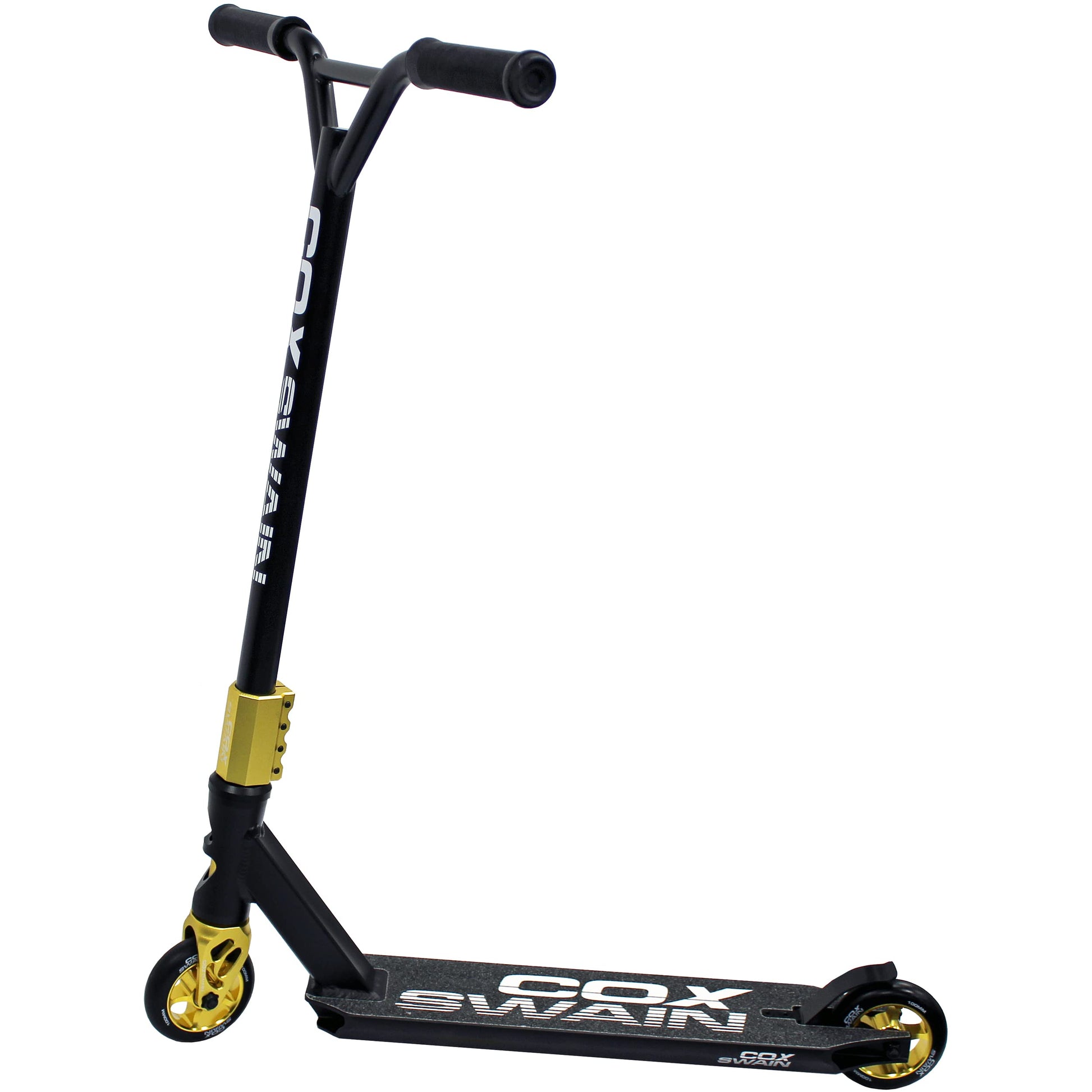 Cox Swain Stunt Scooter X-385, SCS compression, CNC fork, 100mm PU/aluminum wheels, ABEC 9, for kids + adults, beginners + pros, super stable - black/gold