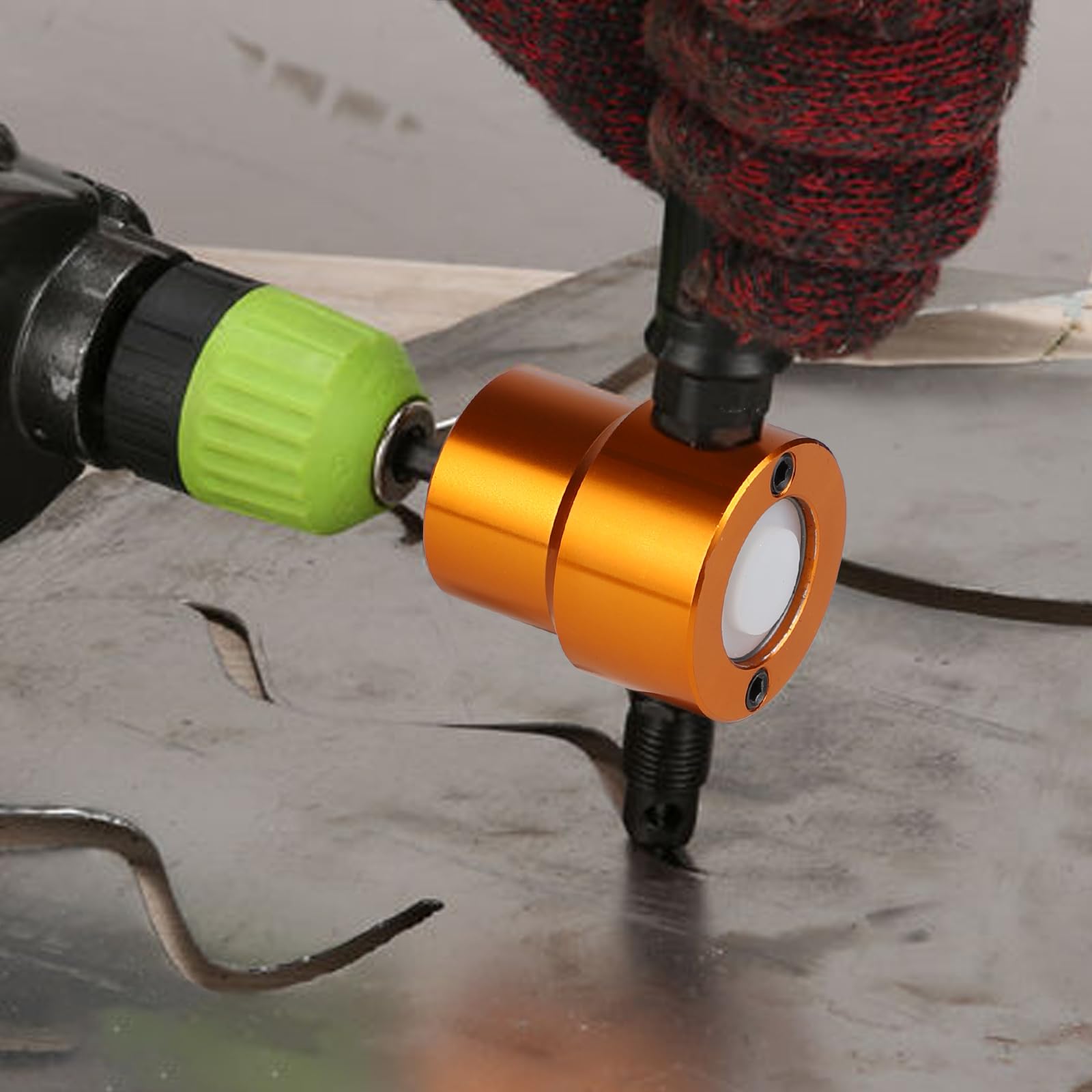 CPROSP Double Head Sheet Metal Nibbler, Metal Cutter for Cordless Drill, Metal Snip Adjustable, Nibbler Cutting Tool with Round Cut Attachment, Gold
