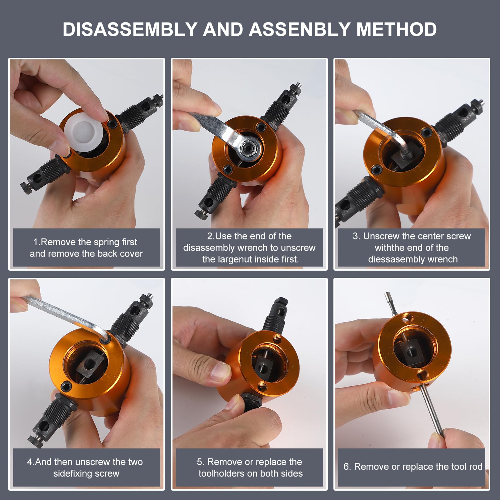 ["Double Headed Sheet Nibbler Metal Cutter Set: Are you ready to drill? Use our double-headed sheet nibbler cutter effortlessly with an electric drill at 1500-3000 RPM, a drill, or a punch and cut machine. Thanks to its high adaptability, it is perfect for car and household repairs and cuts various materials with precision.", "Cut without restriction: In conjunction with an electric drill, this double-head sheet nibbler can effortlessly cut through carbon steel, stainless steel, copper, and aluminum sheets, plastic, and wood. It can cut through a maximum thickness of 1.8 mm (0.06\") for carbon steel sheets, 1.2 mm (0.05\") for stainless steel, and 2.0 mm (0.08\") for plastic and wood.", "Flexible cutting options without sparks flying: With a 360-degree rotatable cutting head, our metal nibbler drill attachment is perfect for cutting straight lines, curves, circles, and various shapes. It offers a cutting radius of up to 12 mm (0.47\") and ensures exceptional precision and flexibility.", "Drill a pilot hole: Easily drill smooth and burr-free circular holes with diameters of 4/6/8/10/12mm (0.16\"/0.24\"/0.31\"/0.39\"/0.47\") using our metal nibbler drill attachment. This metal nibbler can be safely operated with one hand and ensures precise and flawless results.", "Tough as nails: Our nibbler attachment comes with a HSS cutting blade that is strong and does not easily break. Made of alloy steel, the nibbler is resistant to impact, wear, and tear. The semi-circular, double-headed design also allows for easy exchange and long service life."]