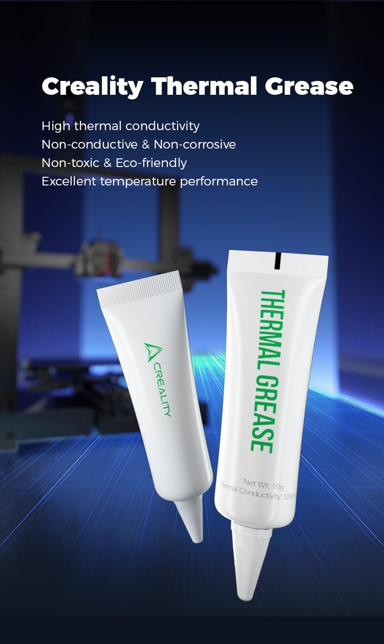 【High-performance thermal paste for precision control】 The thermal paste with 8.5 W/mK conductivity improves heat distribution of heating blocks and hotends, reduces temperature fluctuations, and extends the life of components. Electrically insulating and heat-resistant (-58°F to +572°F).