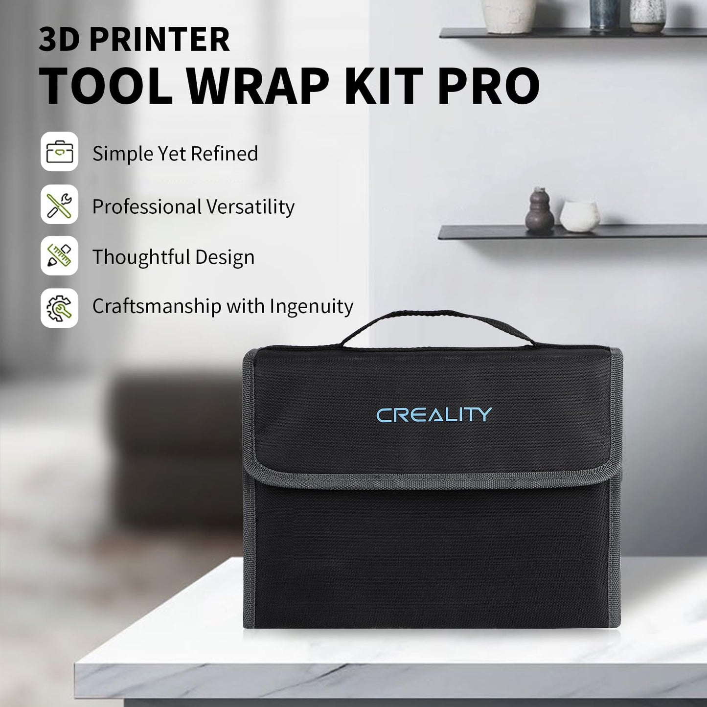 ""🟠Official Quality🟠 This official Creality 3D Printer Tool Wrap Kit Pro provides everything you need to make post-processing a breeze. Whether you are a beginner or a professional, these tools will make your work faster, easier, and more efficient. The high-quality materials and expert craftsmanship ensure that each tool is sturdy and durable, so you can use it for a long time.