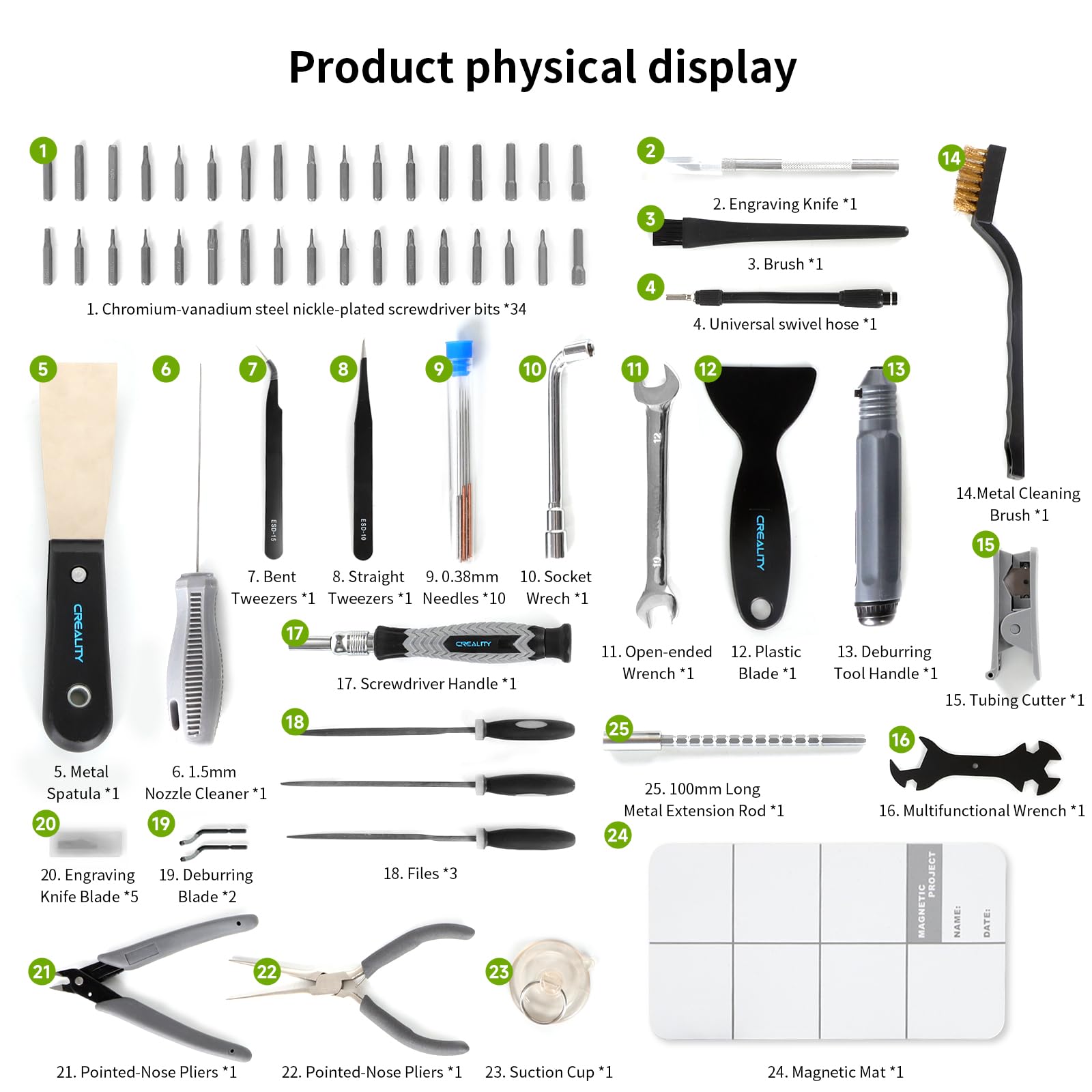 🟠Model Processing Tool🟠 Creality 3D printer accessory tool with deburring tools with 360° rotating blade, for precise refinement of edges of artworks; engraving knife and files for easy handling of various areas on the model surface, edges, corners, etc. Plastic and metal spatulas help in separating the model and platform.