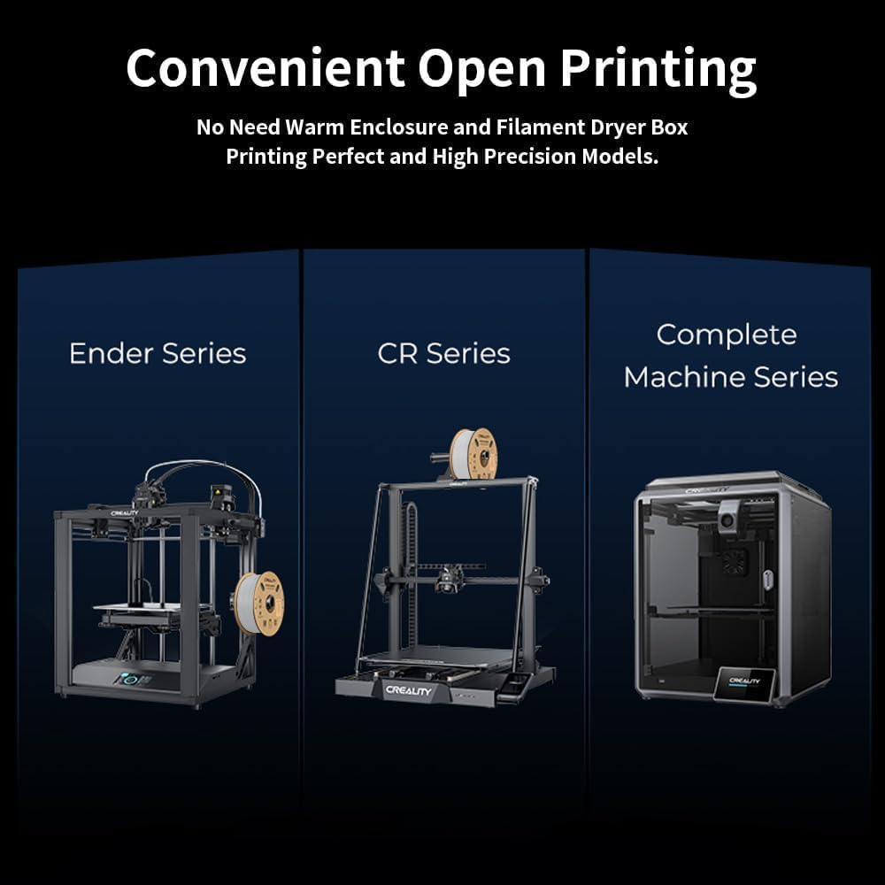 "Wide compatibility - Creality Hyper ABS is compatible with most 1.75mm FFF 3D printers, including Creality models like K1, K1 Max, K1C, Ender-3 V3, Ender-3 V3 KE, and Ender-3 V3 SE, as well as other high-speed 3D printers on the market."]