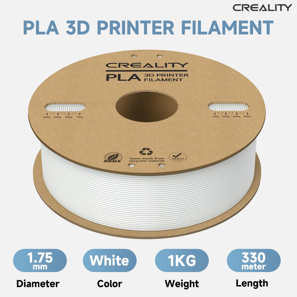 Creality Official PLA 3D Printer Filament 1.75mm, smooth printing, less tangling, with cardboard spool, dimensional accuracy +/- 0.03mm, 1kg/spool, suitable for most FDM 3D printers, white.