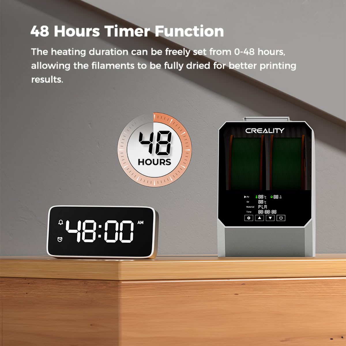 "【Free Customize & Adjust】🟠 --- The heating time can be freely set from 0-48 hours to fully dry the filaments and achieve better print results. Of course, you can also adjust the temperature continuously between 45℃ and 70℃. You can switch between ℃ and ℉.",