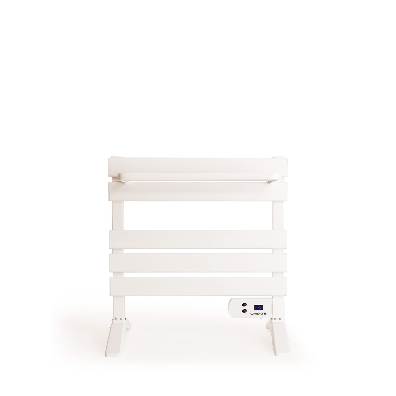 CREATE / WARM Towel Mini 150W / Electric Bathroom Heater White with Stand Feet and Shelf / 22.9x16.1x22 inches / Quiet, low consumption, LCD display, 150W
