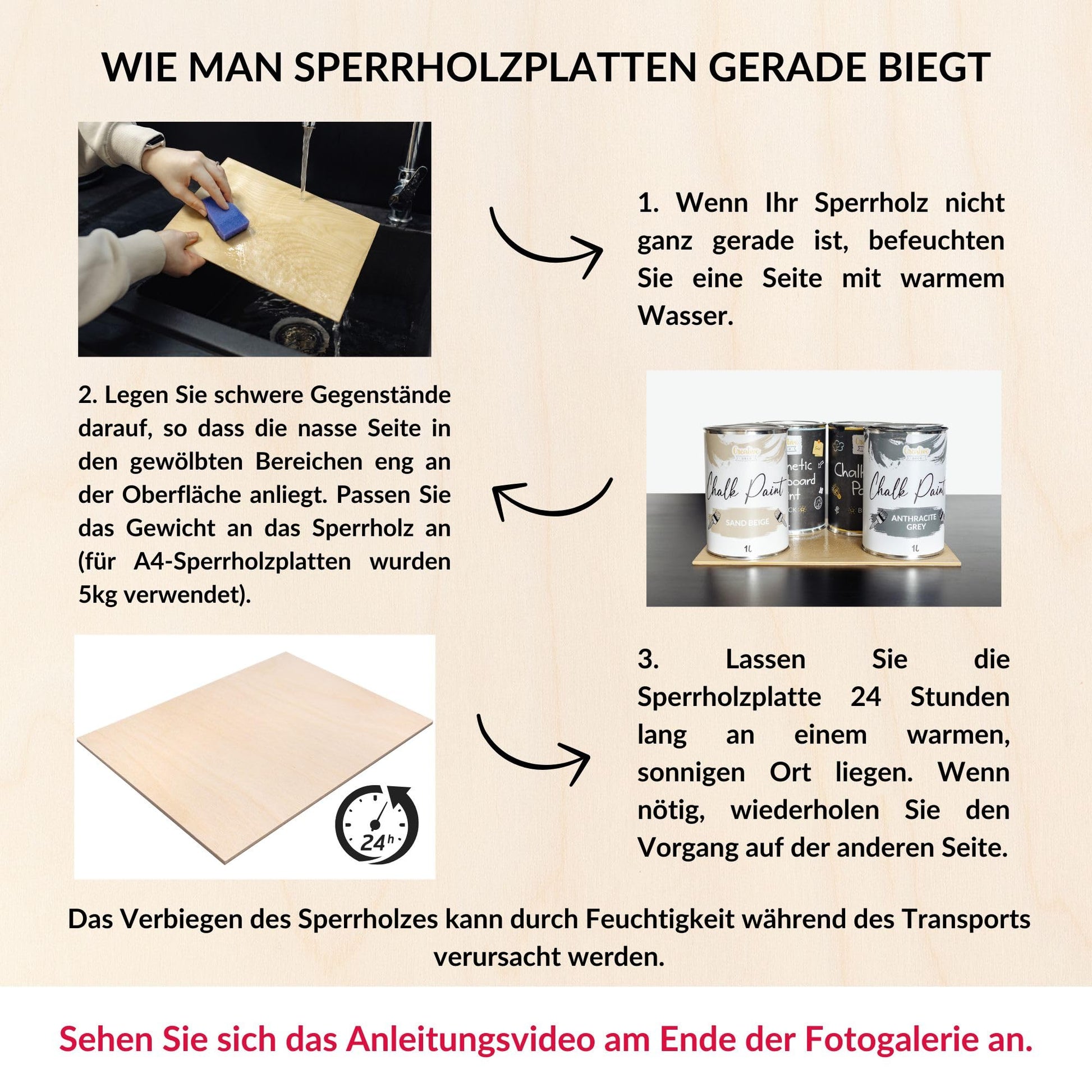 "RARELY DEFORMS - If it accidentally deforms, moisten the concave side and dry the convex, buckled side. Use a sponge or syringe to moisten the concave side of the plywood (hot water). Then place the board with the damp side down on the floor for 2 days. Alternative for chipboard, MDF, poplar plywood, veneer wood, scroll saw wood, osb boards, craft wood, chipboard, installation boards, balsa wood, cabinet back panel."